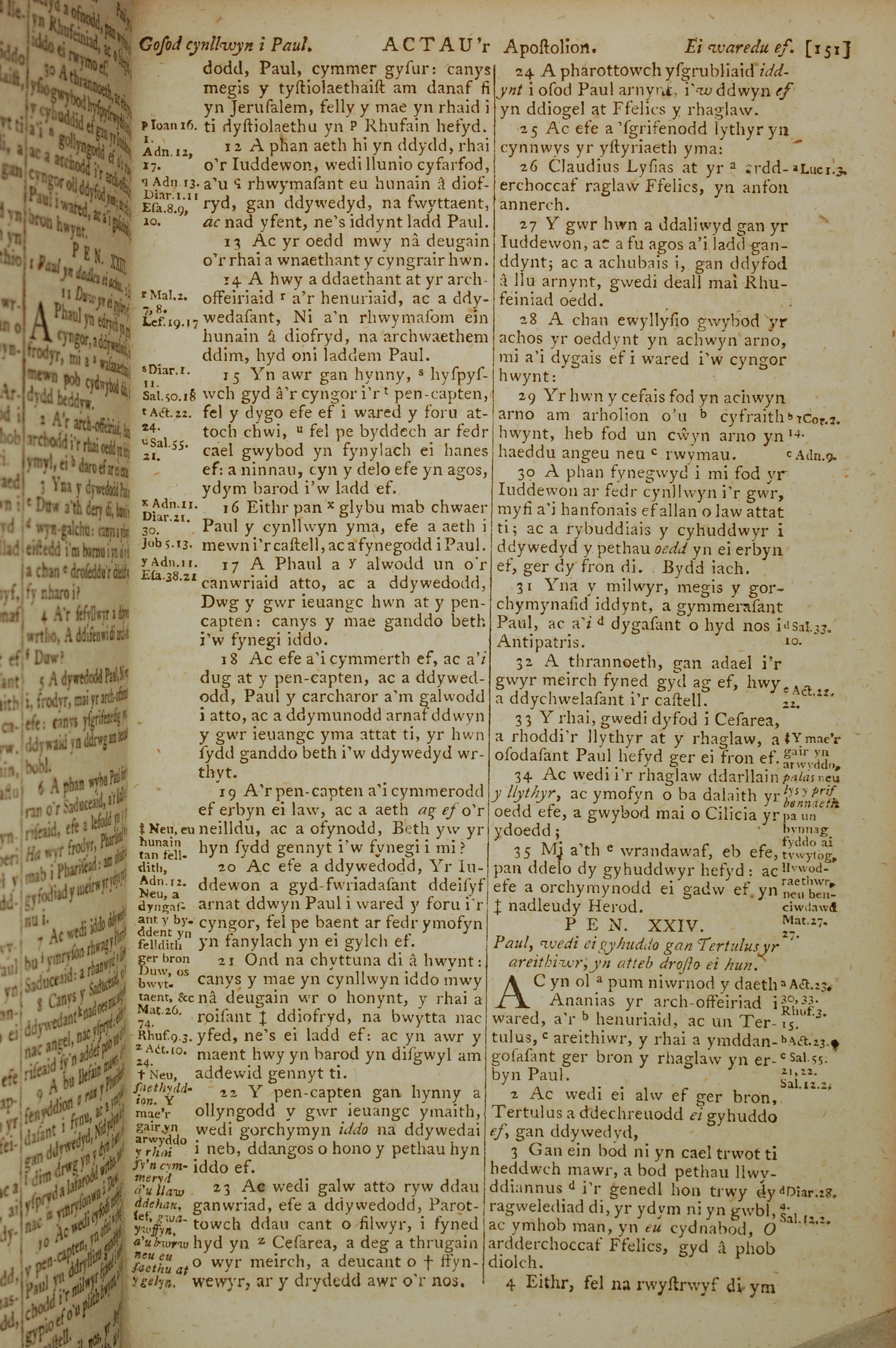 1796年威爾斯文新舊約全書 使徒行傳 23 章 12 節到 24 章 4 節