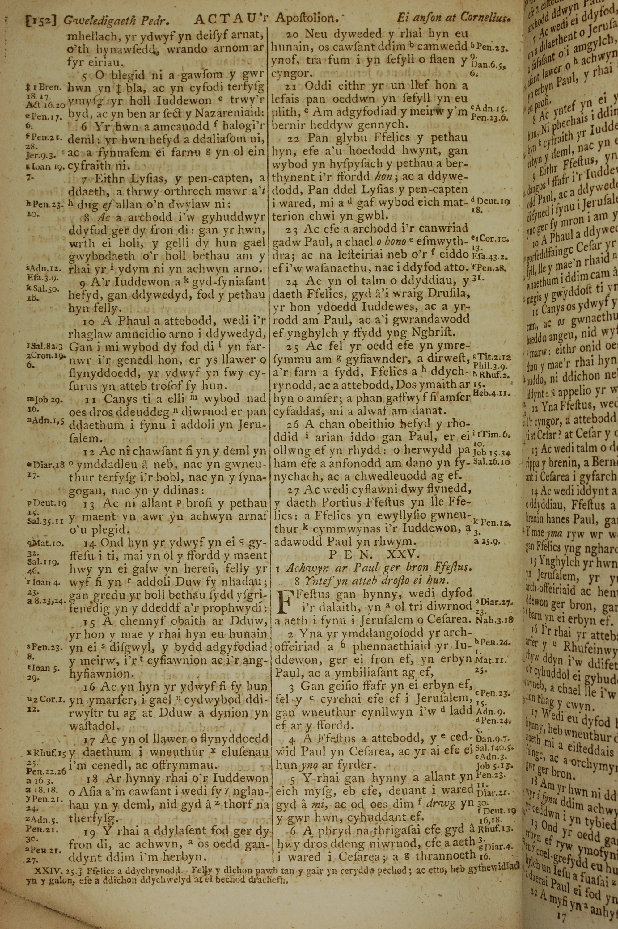 1796年威爾斯文新舊約全書 使徒行傳 24 章 5 節到 25 章 6 節