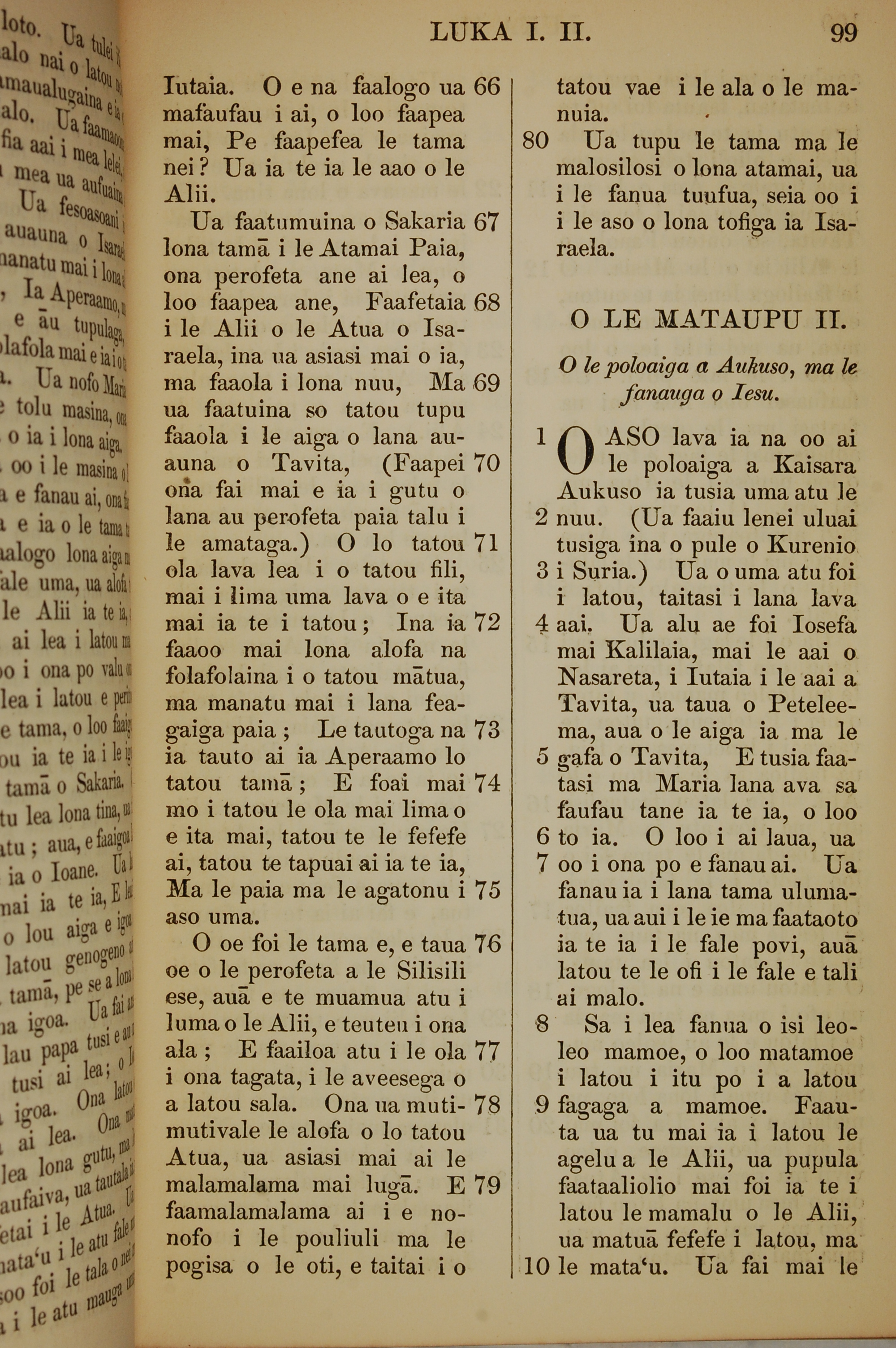 1849年薩摩亞語新約全書 路加福音 1 章 66 節到 2 章 10 節
