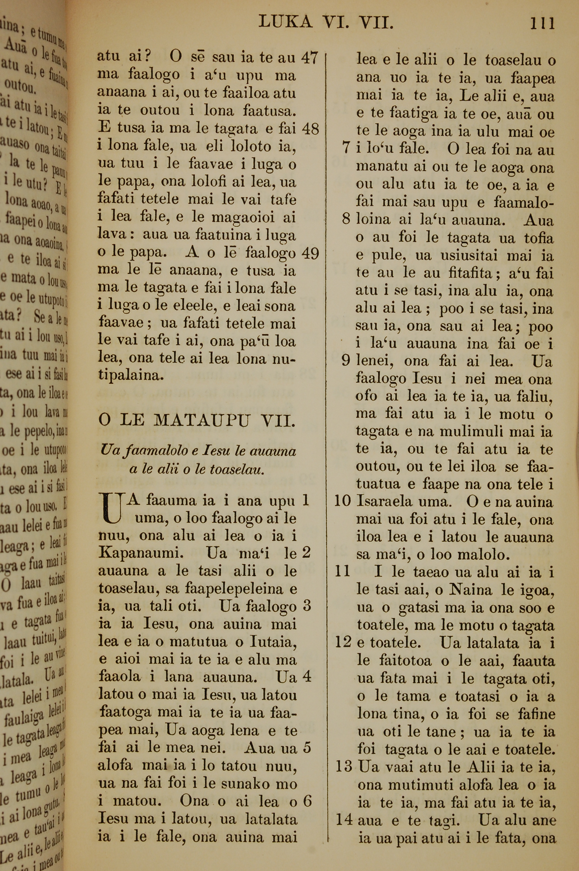 1849年薩摩亞語新約全書 路加福音 6 章 47 節到 7 章 14 節