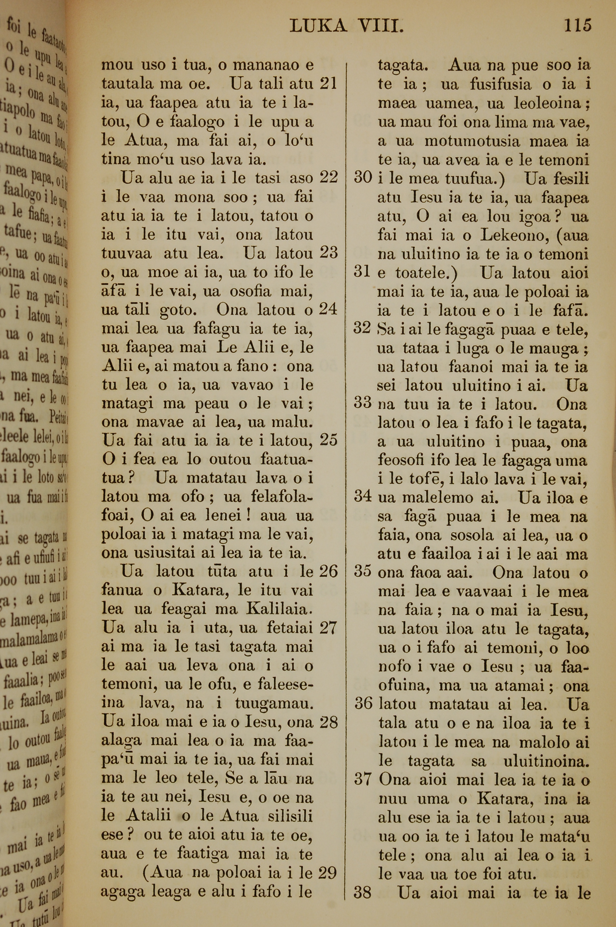 1849年薩摩亞語新約全書 路加福音 8 章 21 節到 8 章 38 節