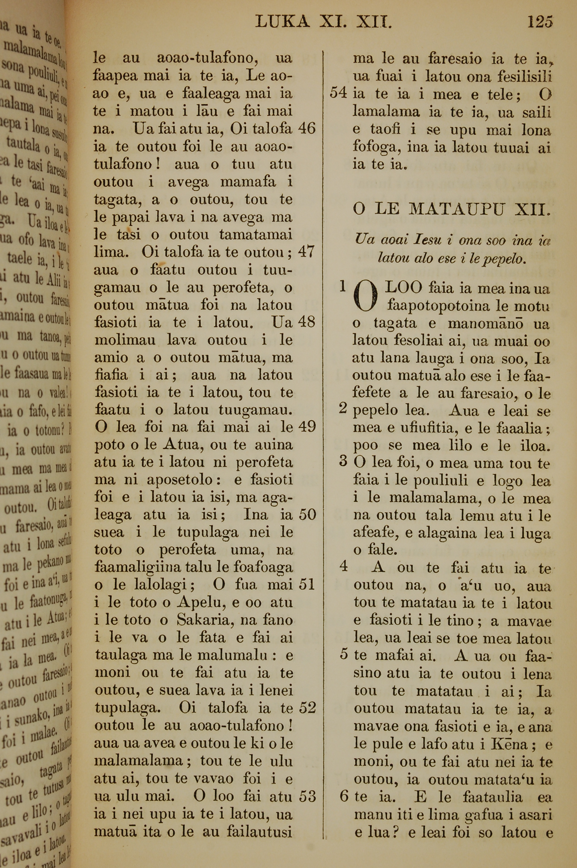 1849年薩摩亞語新約全書 路加福音 11 章 46 節到 12 章 6 節