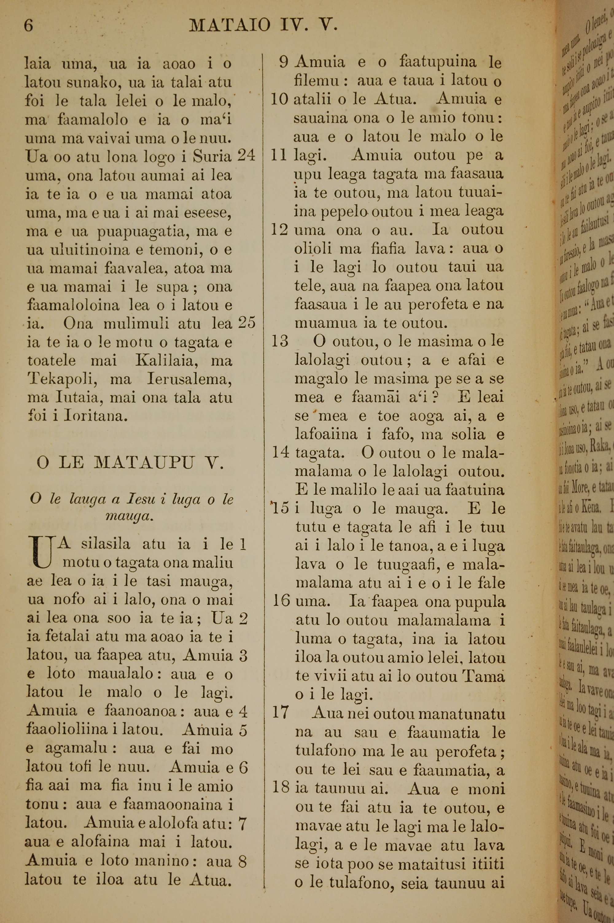1849年薩摩亞語新約全書 馬太福音 4 章 24 節到 5 章 18 節