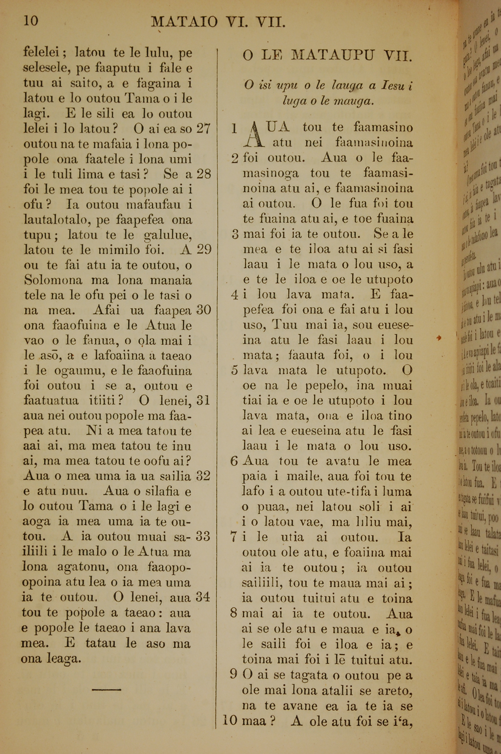 1849年薩摩亞語新約全書 馬太福音 6 章 27 節到 7 章 10 節