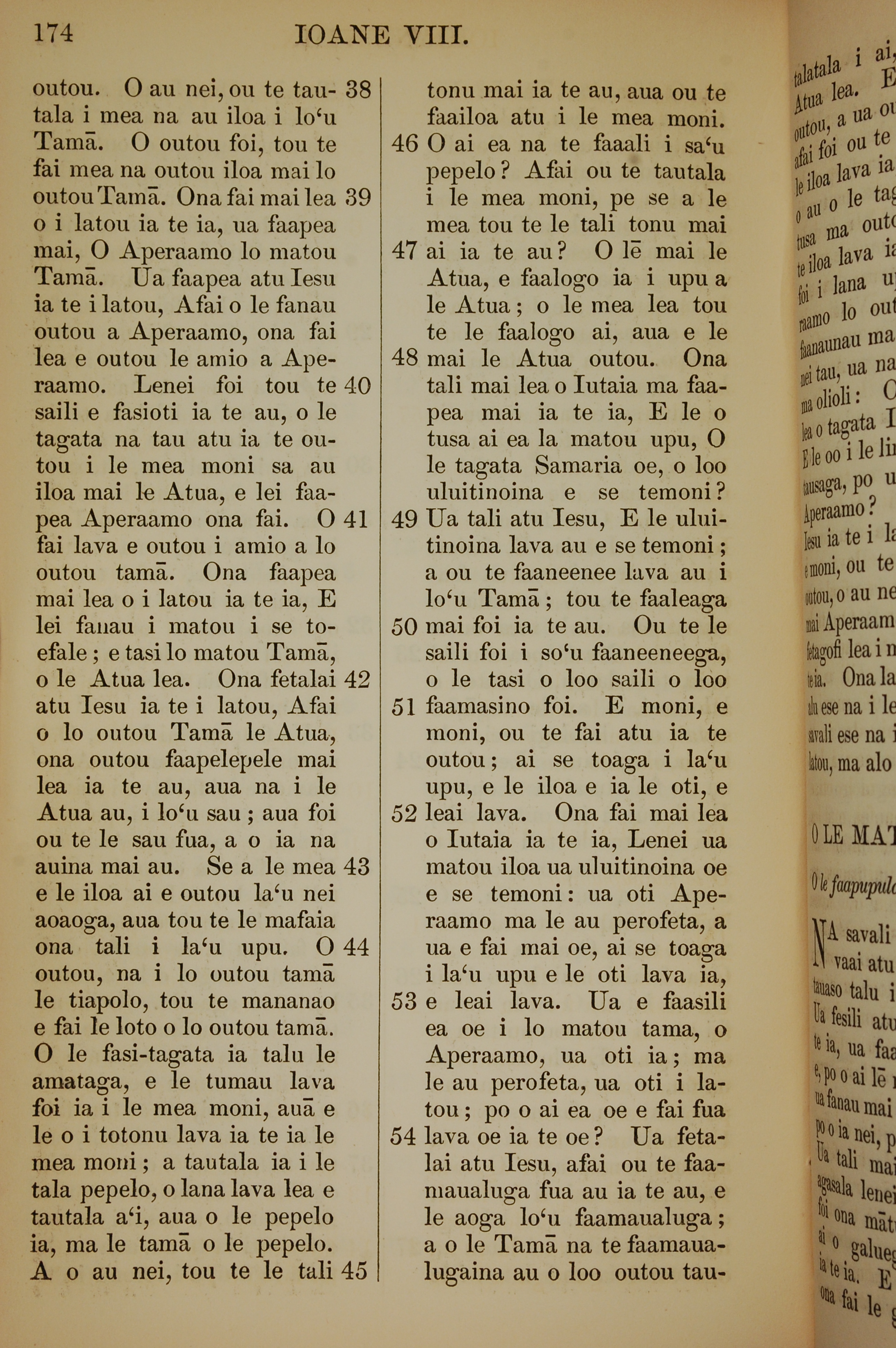 1849年薩摩亞語新約全書 約翰福音 8 章 38 節到 8 章 54 節