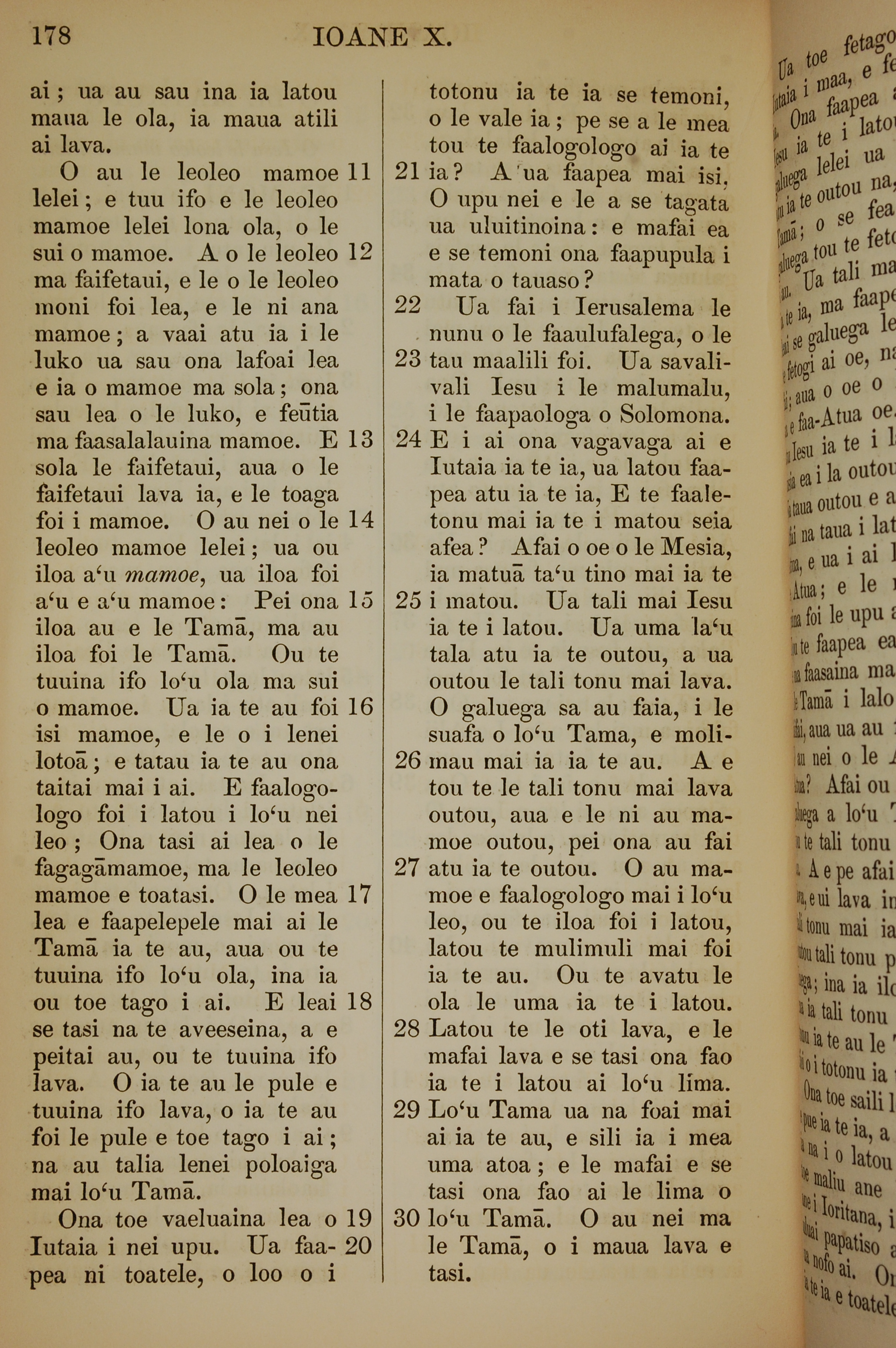 1849年薩摩亞語新約全書 約翰福音 10 章 11 節到 10 章 30 節