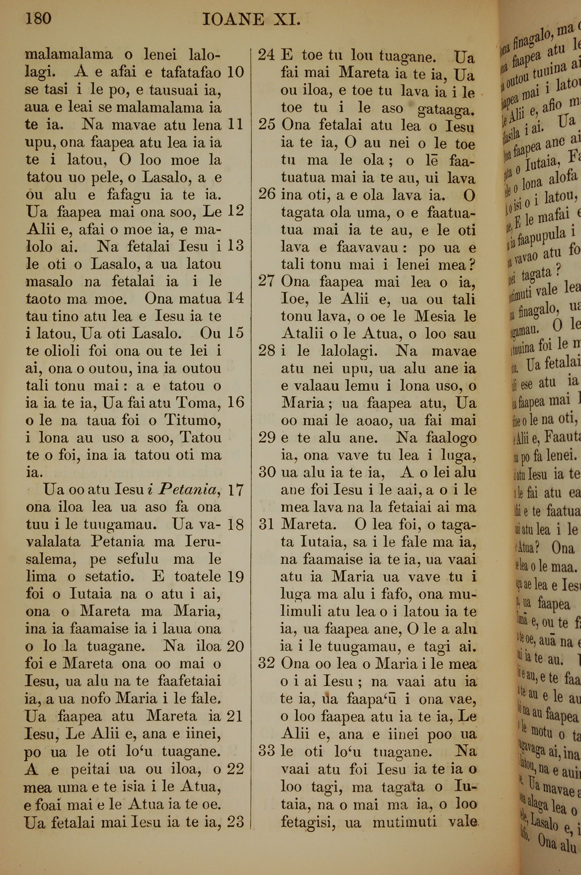 1849年薩摩亞語新約全書 約翰福音 11 章 10 節到 11 章 33 節