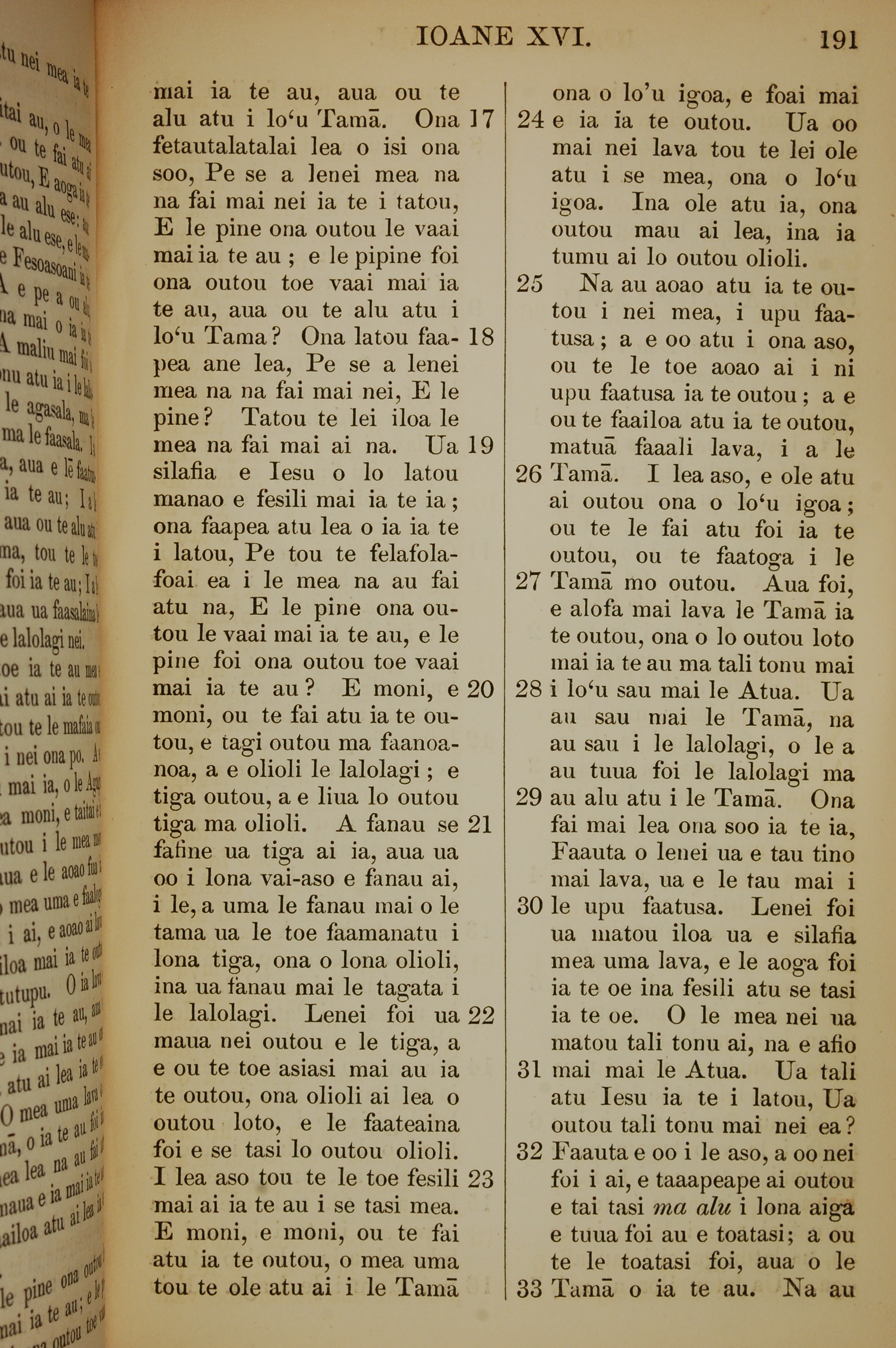 1849年薩摩亞語新約全書 約翰福音 16 章 17 節到 16 章 33 節