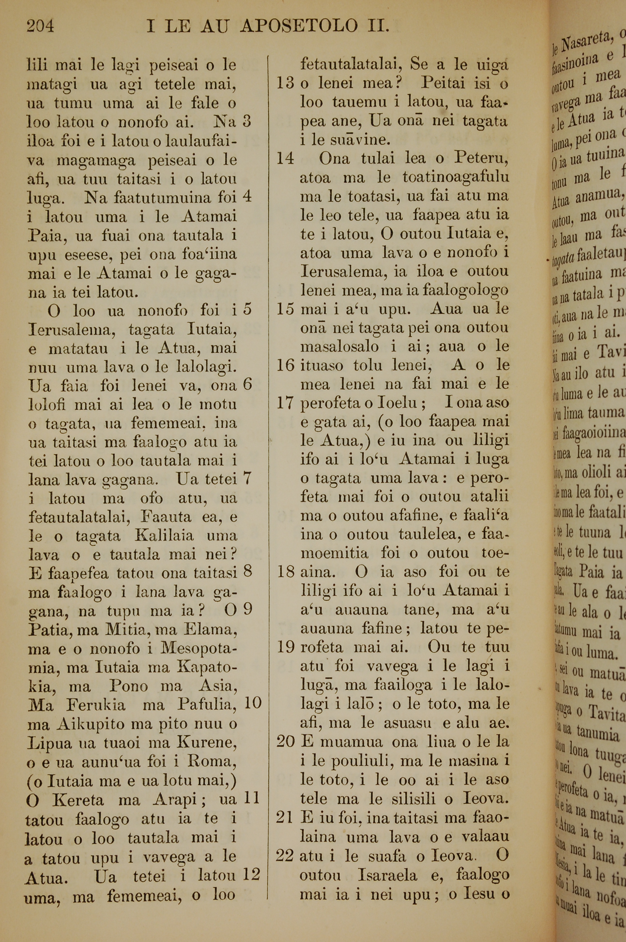 1849年薩摩亞語新約全書 使徒行傳 2 章 3 節到 2 章 22 節
