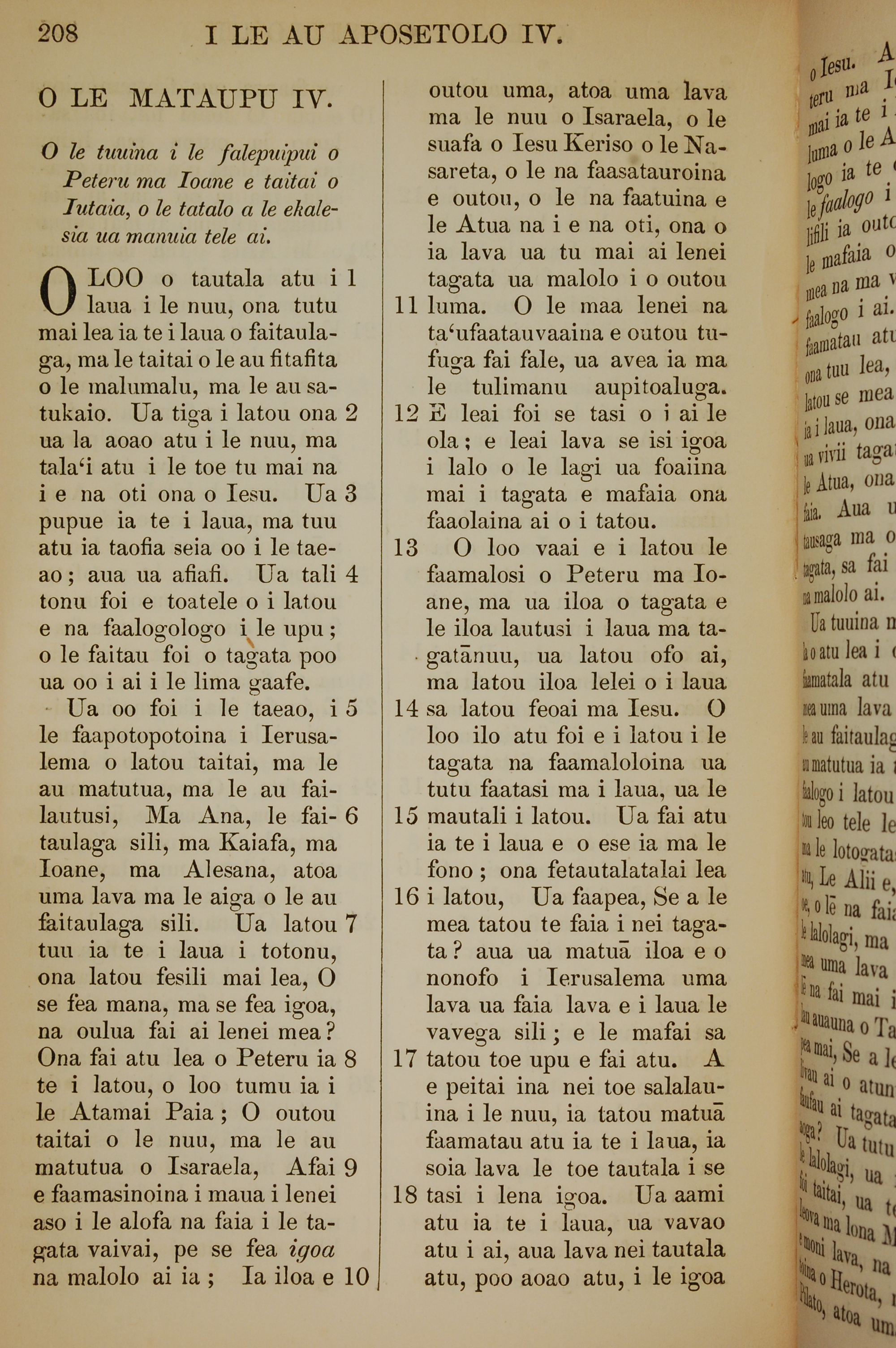 1849年薩摩亞語新約全書 使徒行傳 4 章 1 節到 4 章 18 節