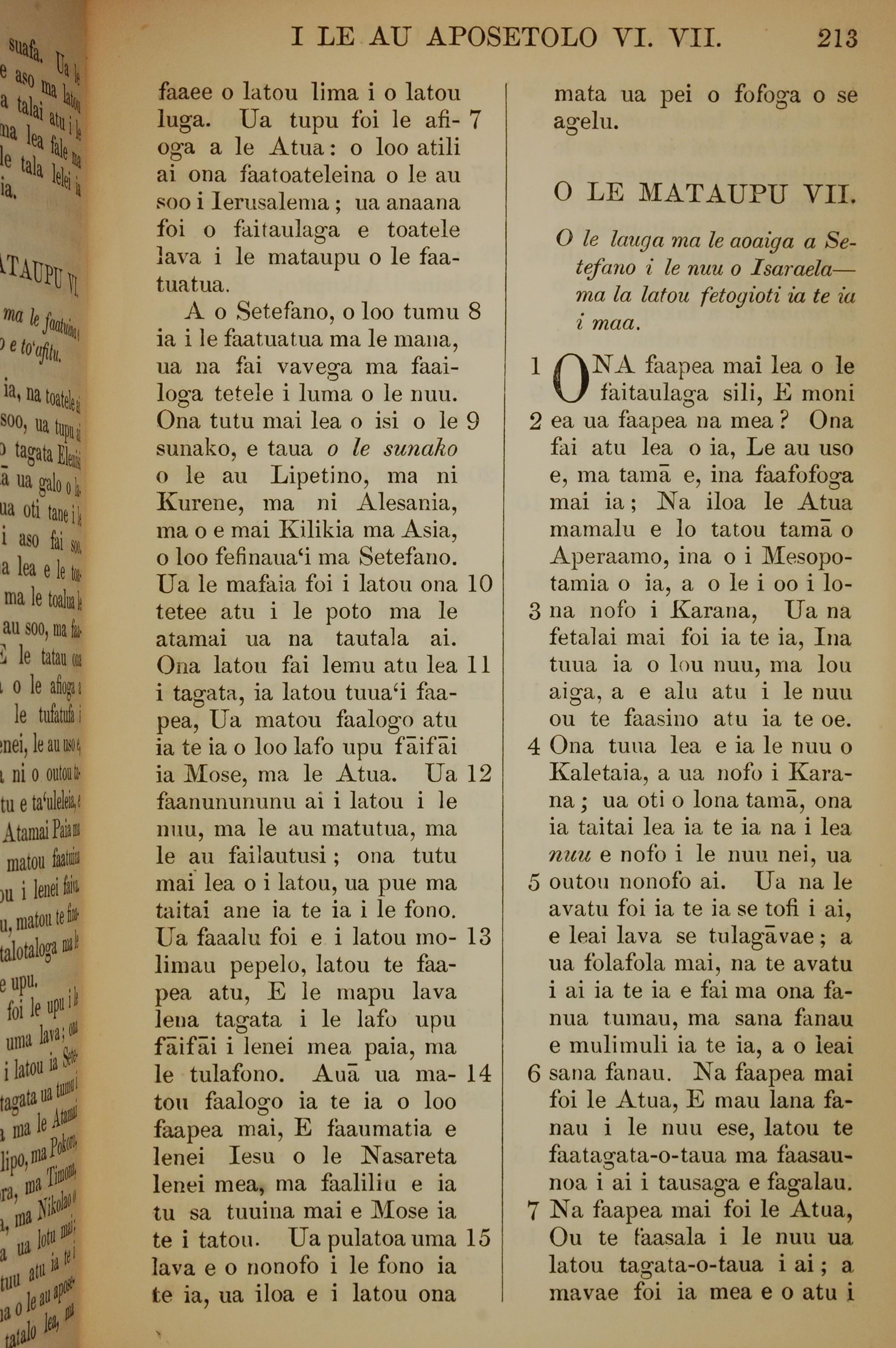 1849年薩摩亞語新約全書 使徒行傳 6 章 7 節到 7 章 7 節