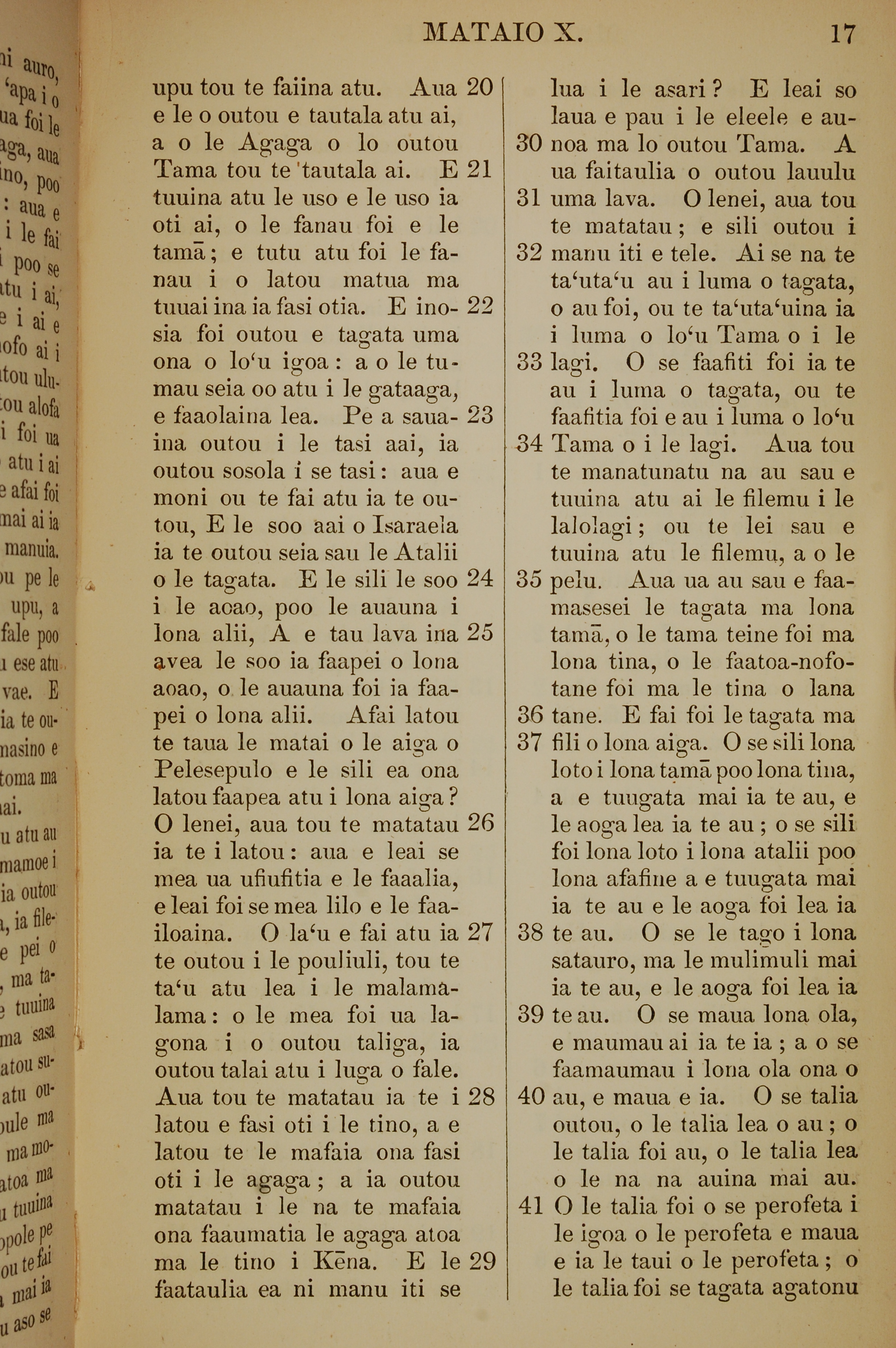 1849年薩摩亞語新約全書 馬太福音 10 章 20 節到 10 章 41 節