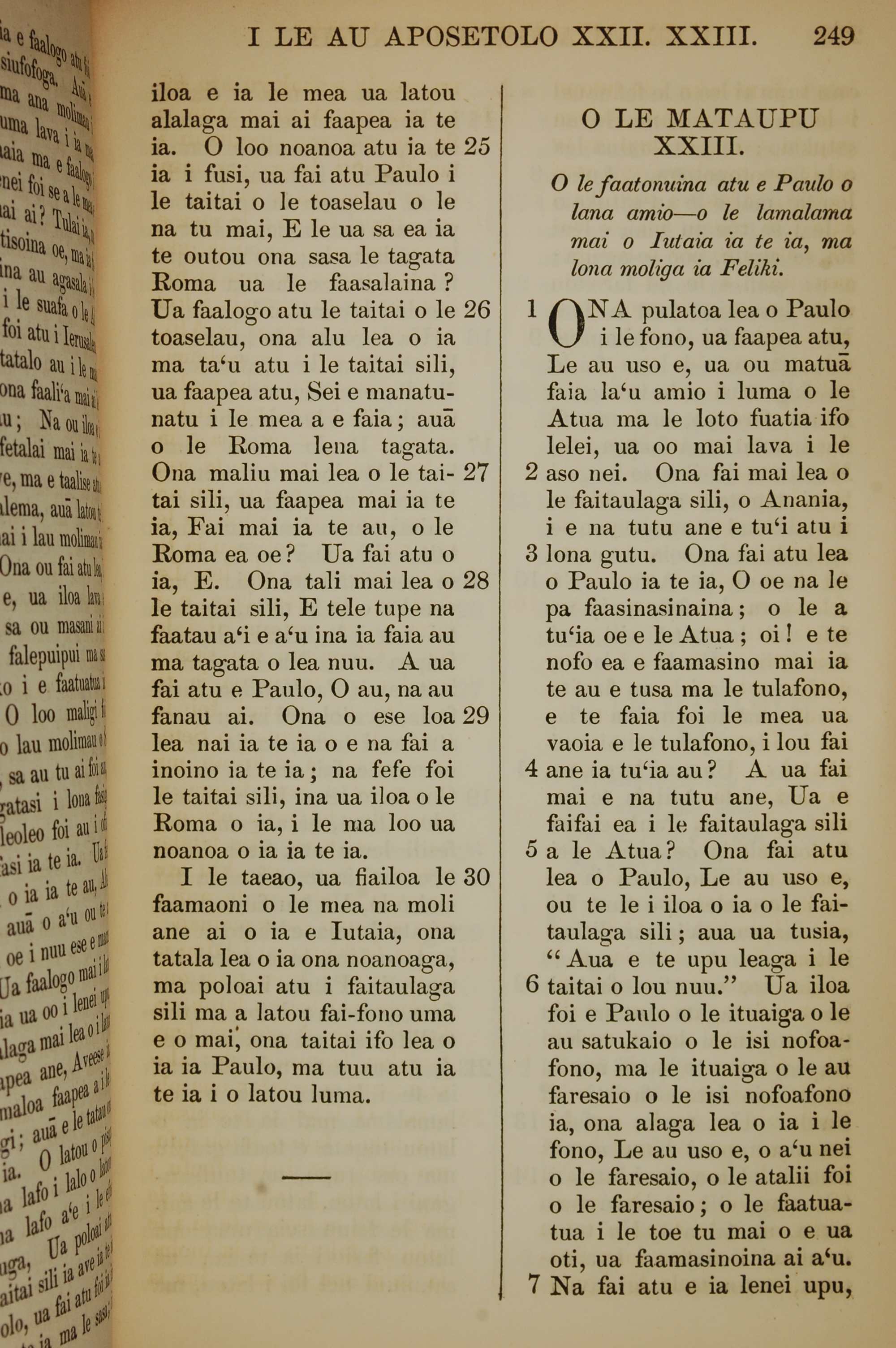 1849年薩摩亞語新約全書 使徒行傳 22 章 25 節到 23 章 7 節