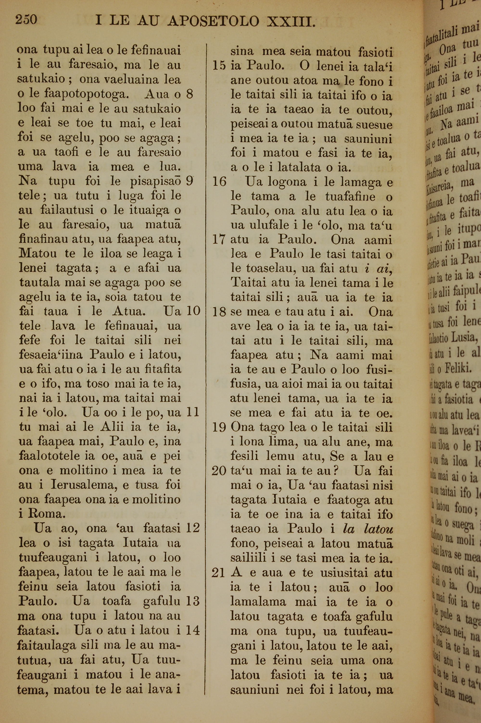 1849年薩摩亞語新約全書 使徒行傳 23 章 8 節到 23 章 21 節