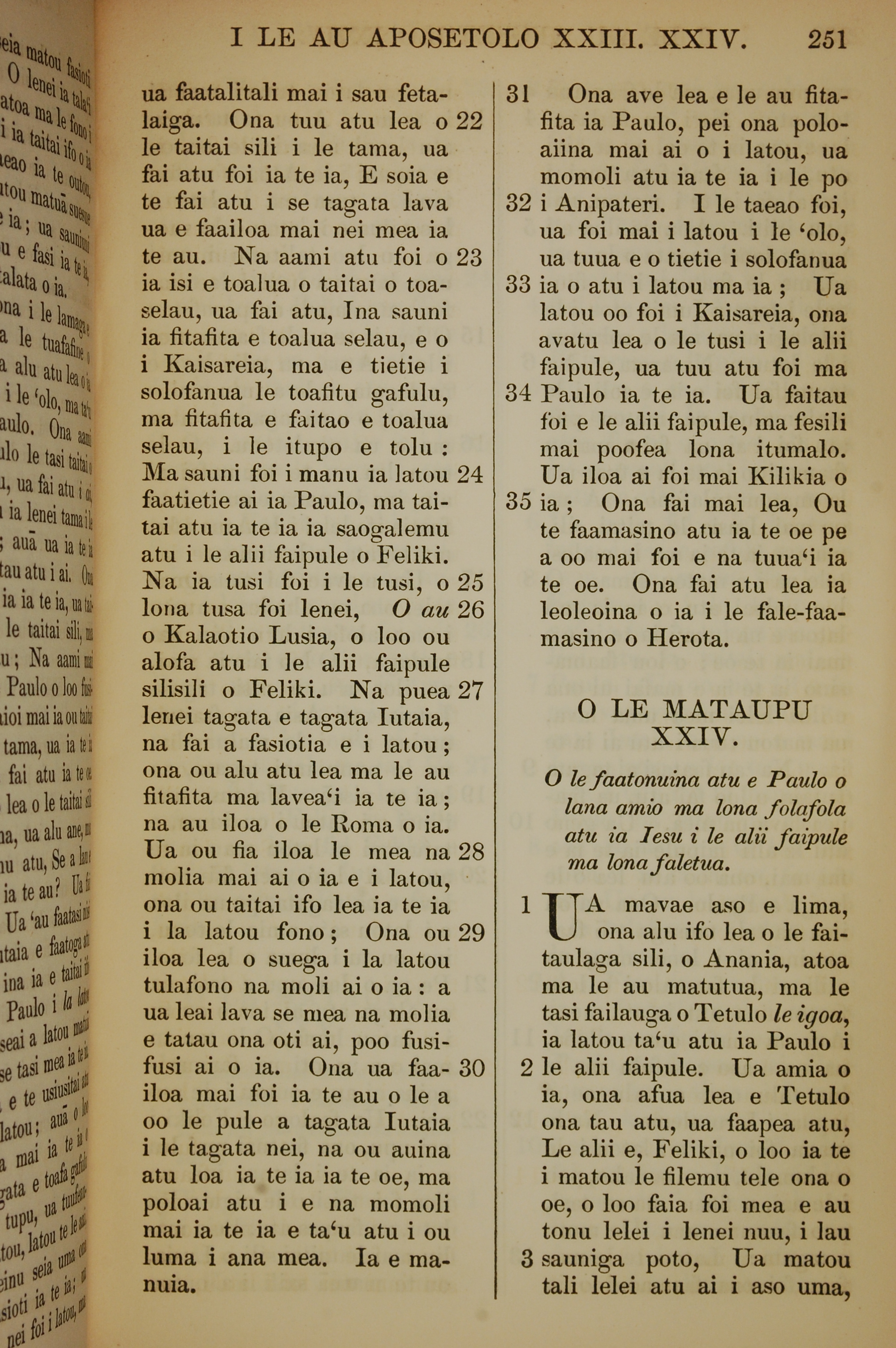 1849年薩摩亞語新約全書 使徒行傳 23 章 22 節到 24 章 3 節