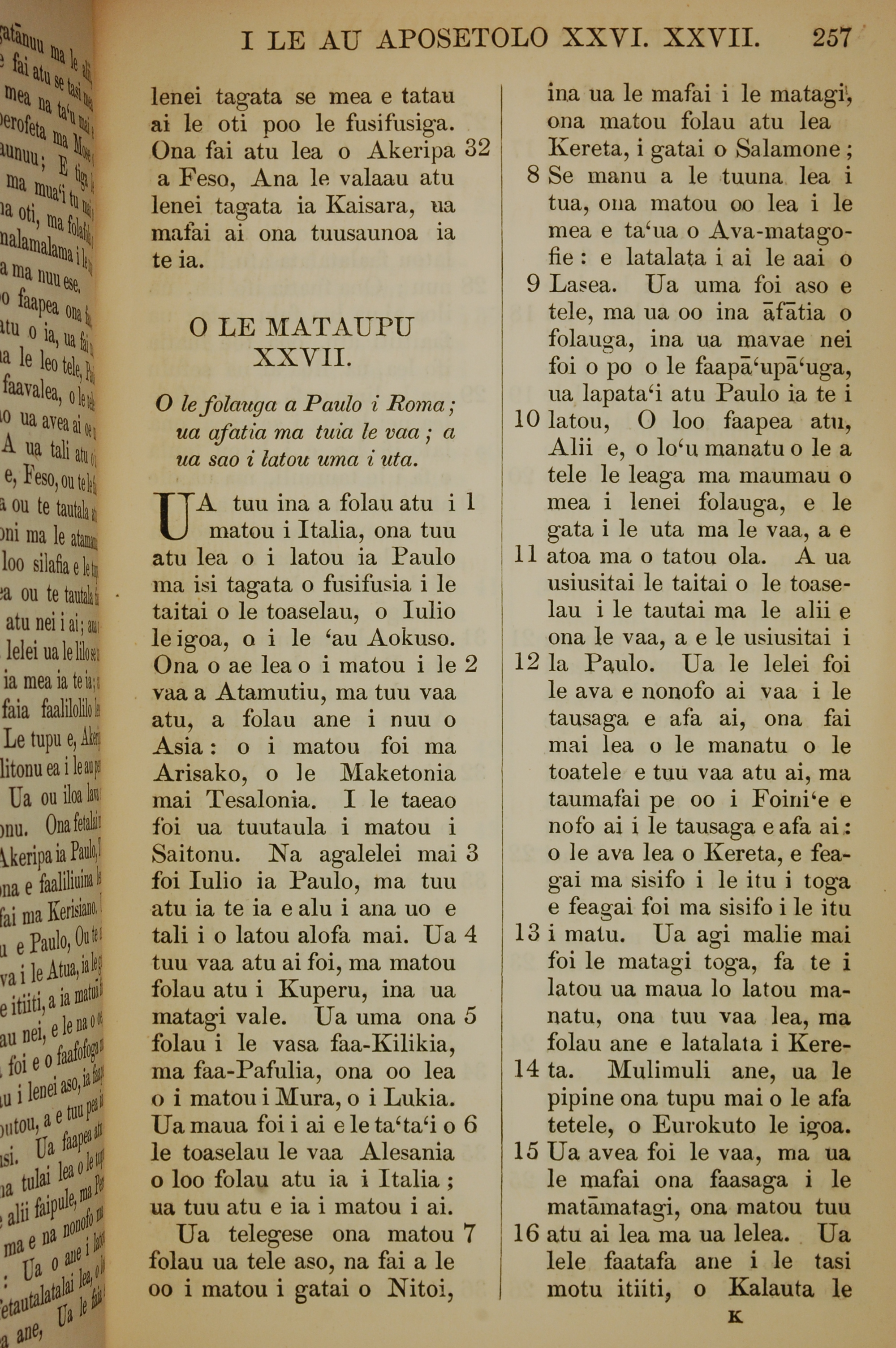 1849年薩摩亞語新約全書 使徒行傳 26 章 32 節到 27 章 16 節