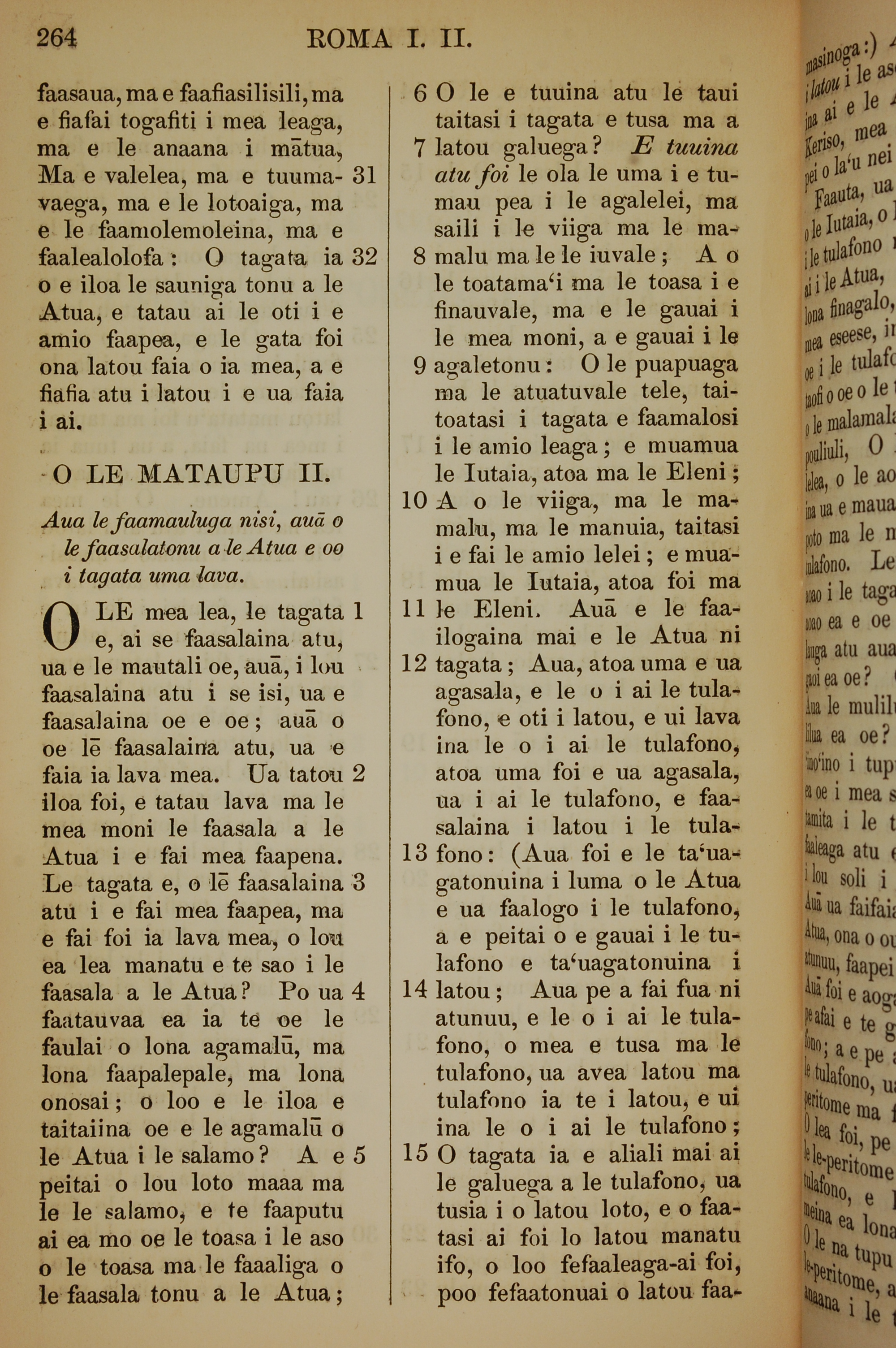 1849年薩摩亞語新約全書 羅馬書 1 章 31 節到 2 章 15 節
