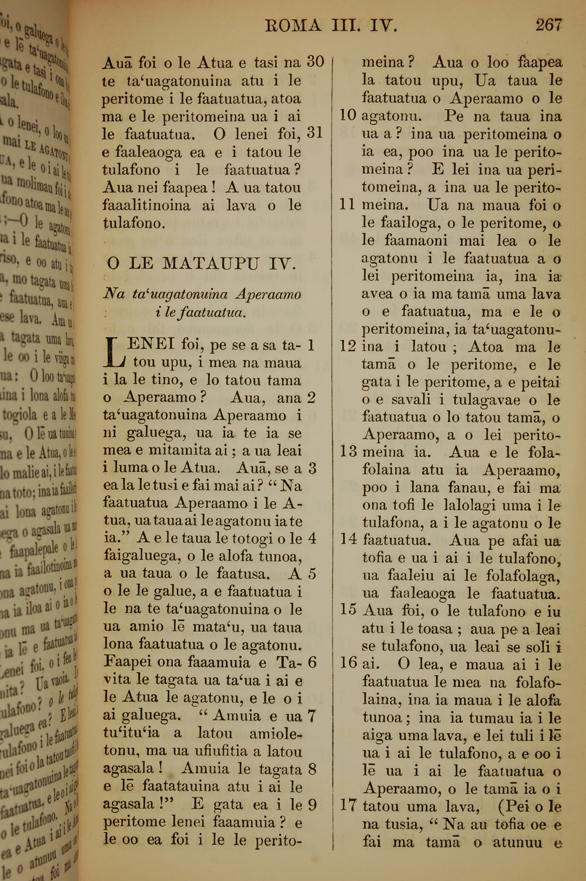 1849年薩摩亞語新約全書 羅馬書 3 章 30 節到 4 章 17 節