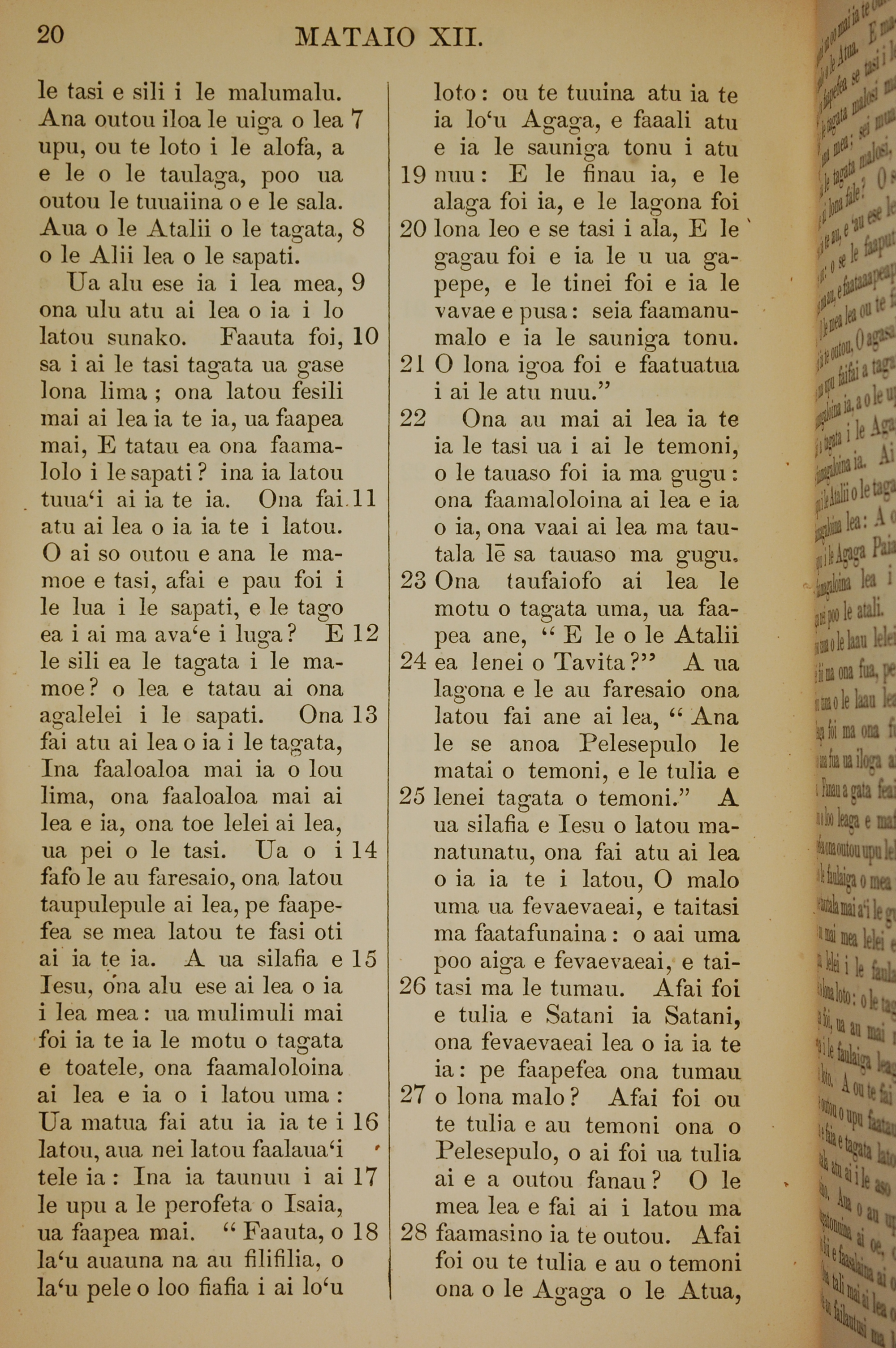 1849年薩摩亞語新約全書 馬太福音 12 章 7 節到 12 章 28 節