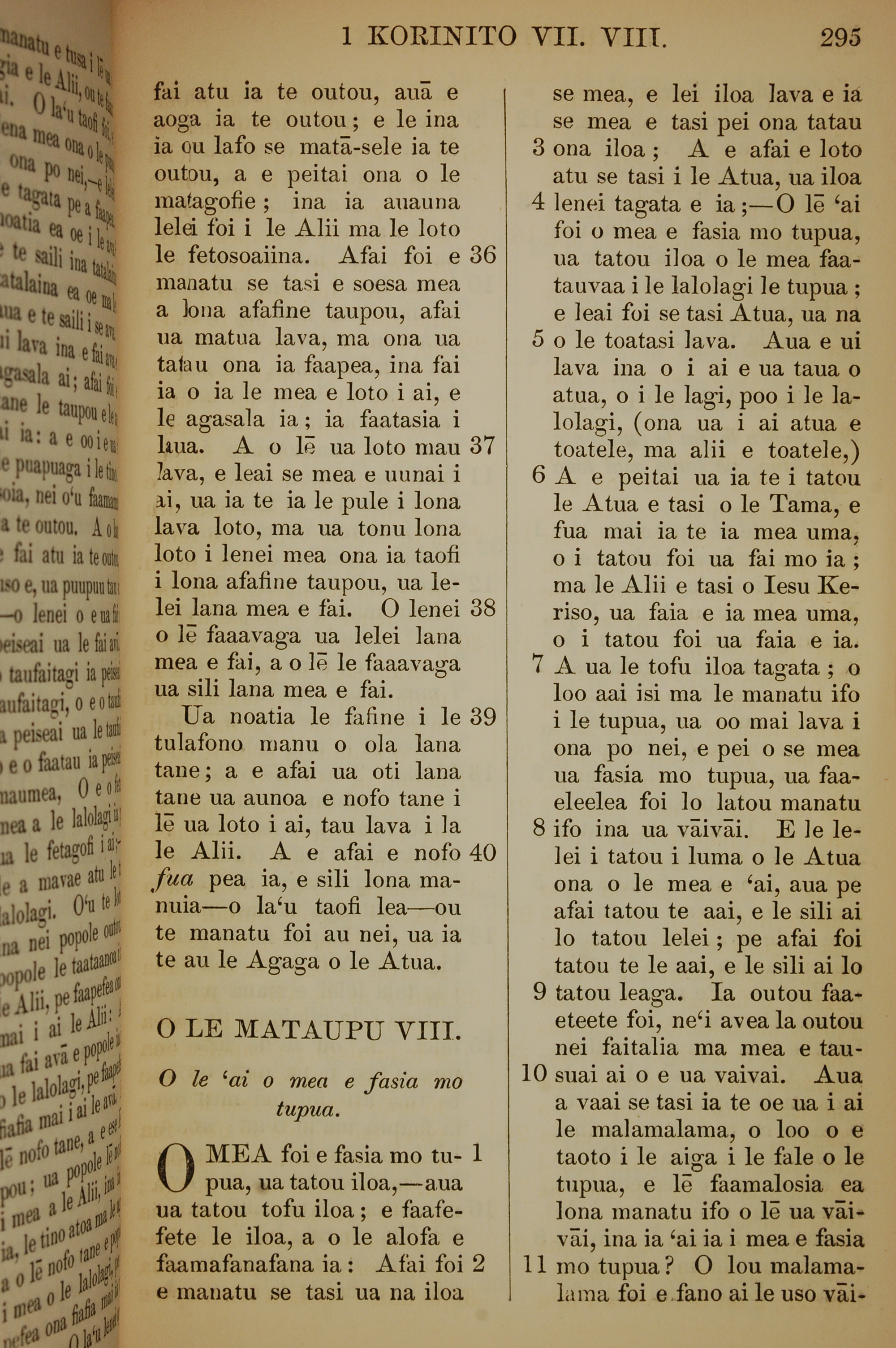 1849年薩摩亞語新約全書 哥林多前書 7 章 36 節到 8 章 11 節