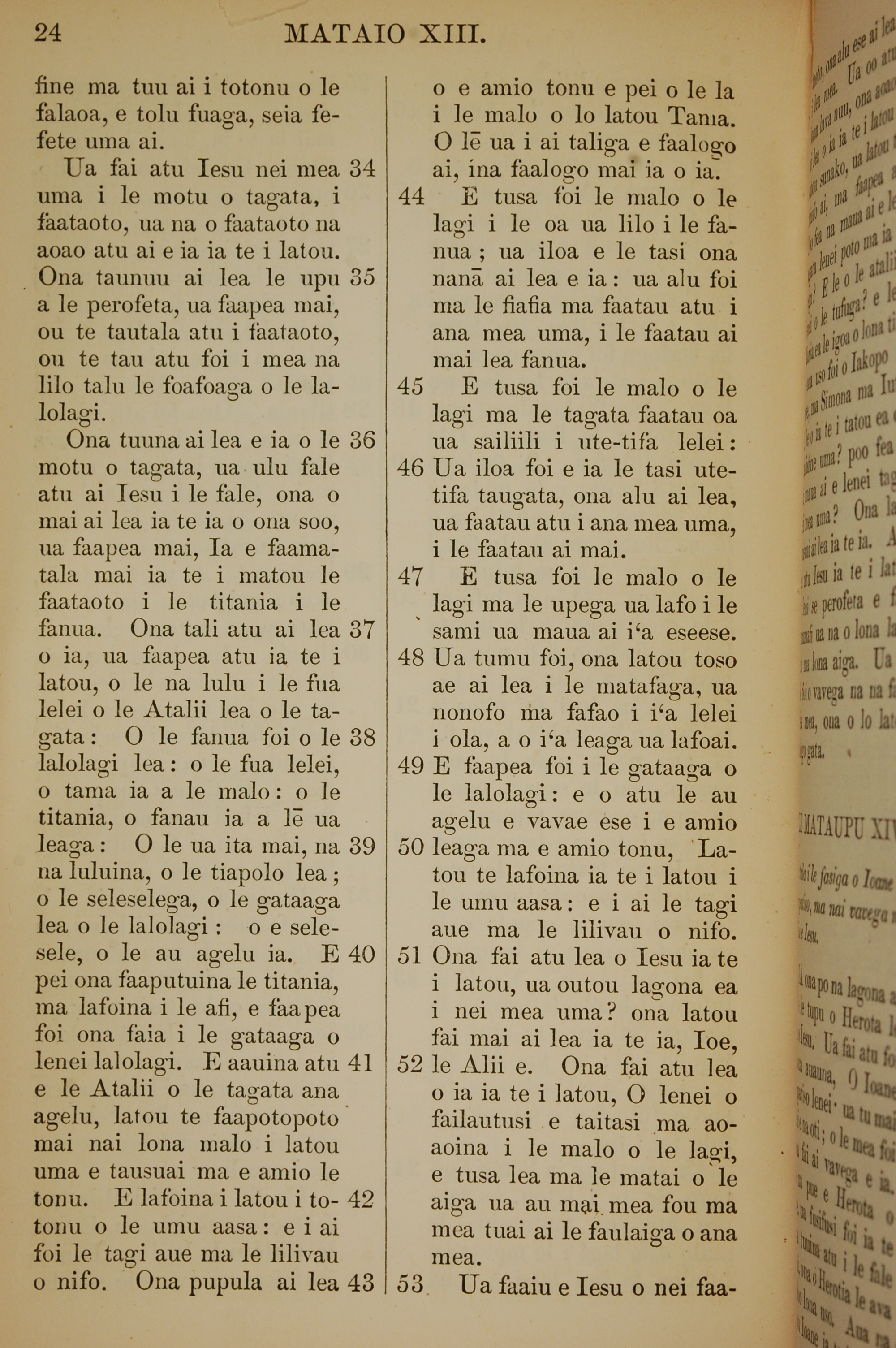 1849年薩摩亞語新約全書 馬太福音 13 章 34 節到 13 章 53 節