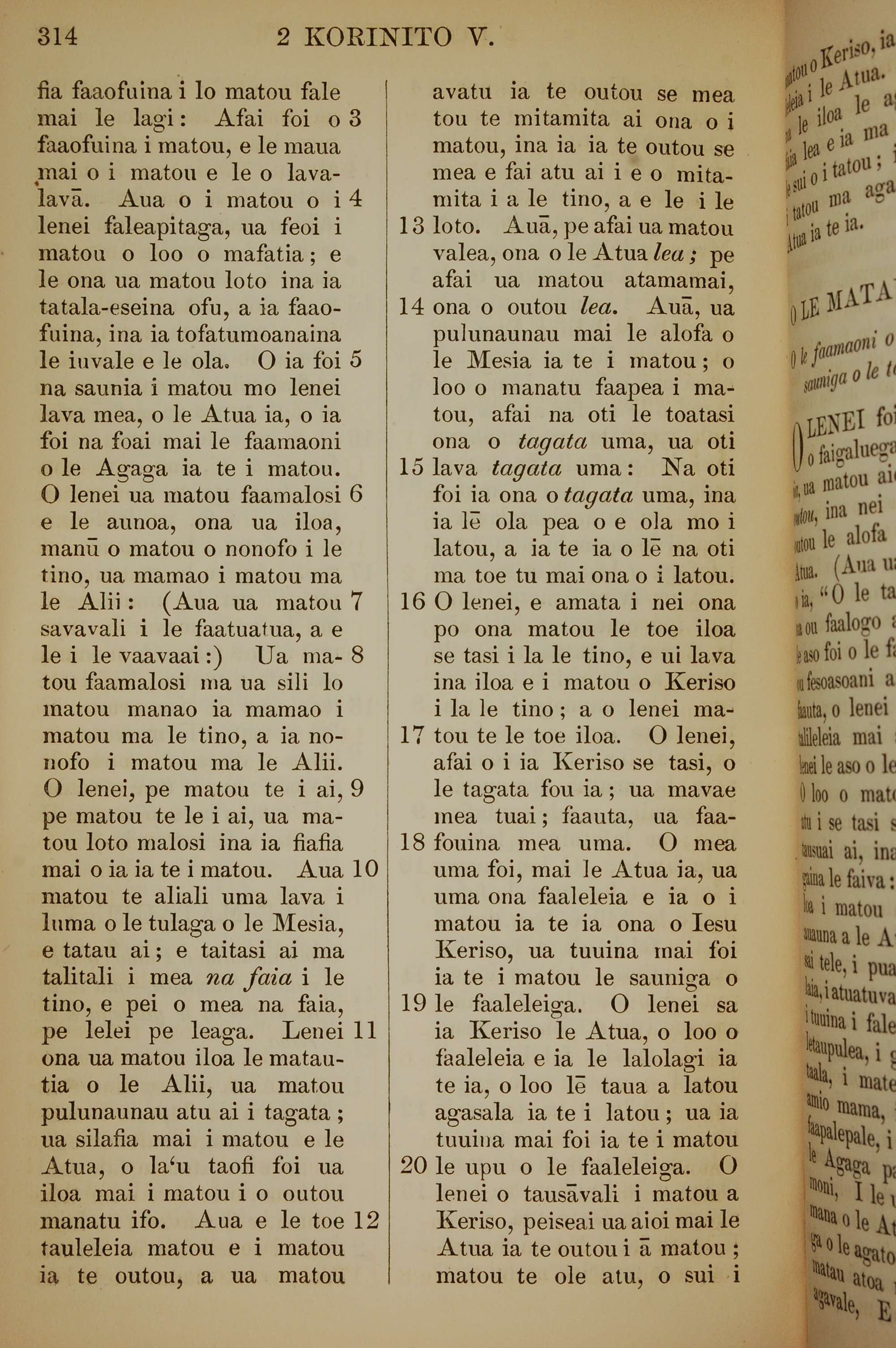 1849年薩摩亞語新約全書 哥林多後書 5 章 3 節到 5 章 20 節
