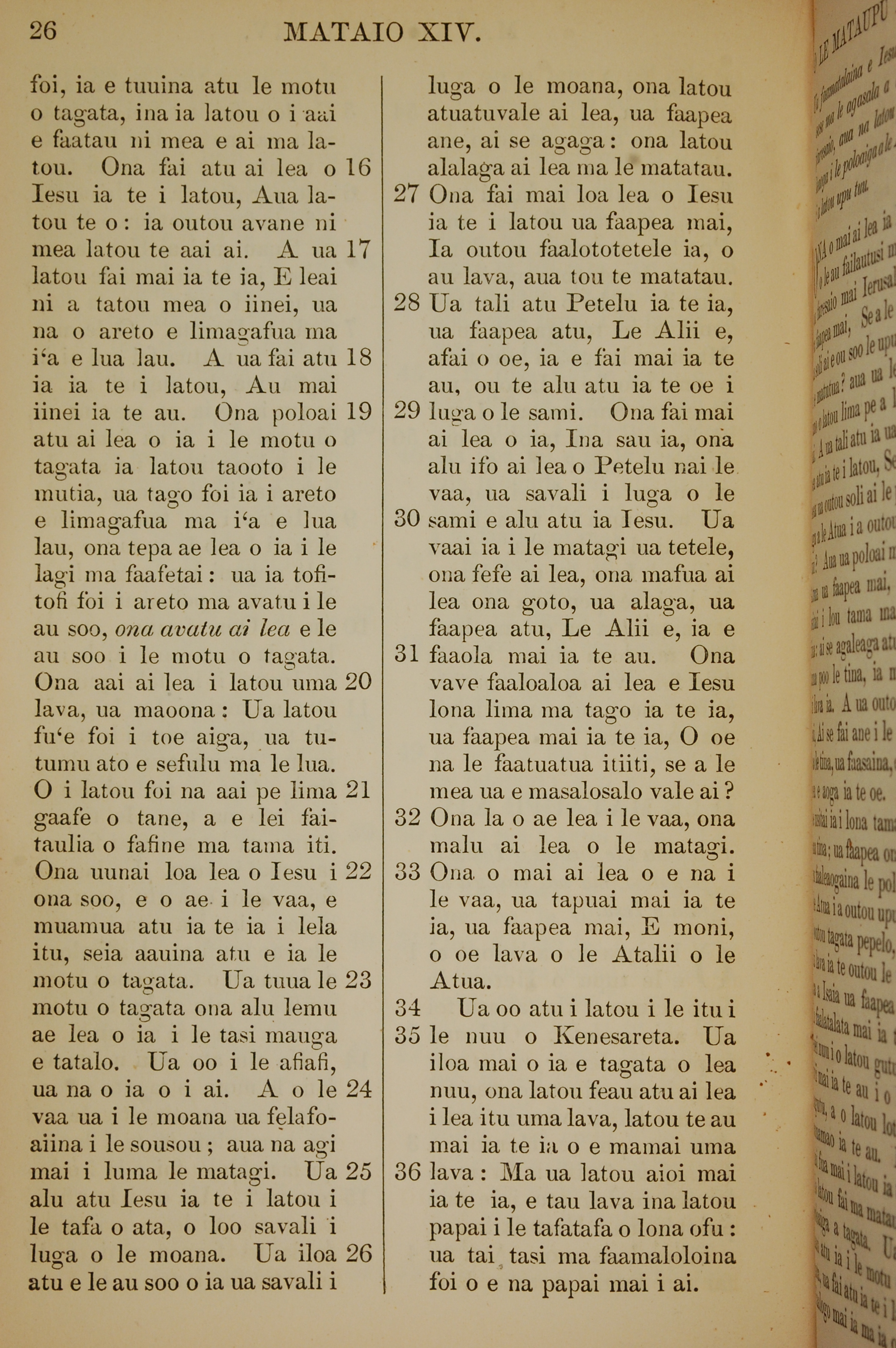 1849年薩摩亞語新約全書 馬太福音 14 章 16 節到 14 章 36 節
