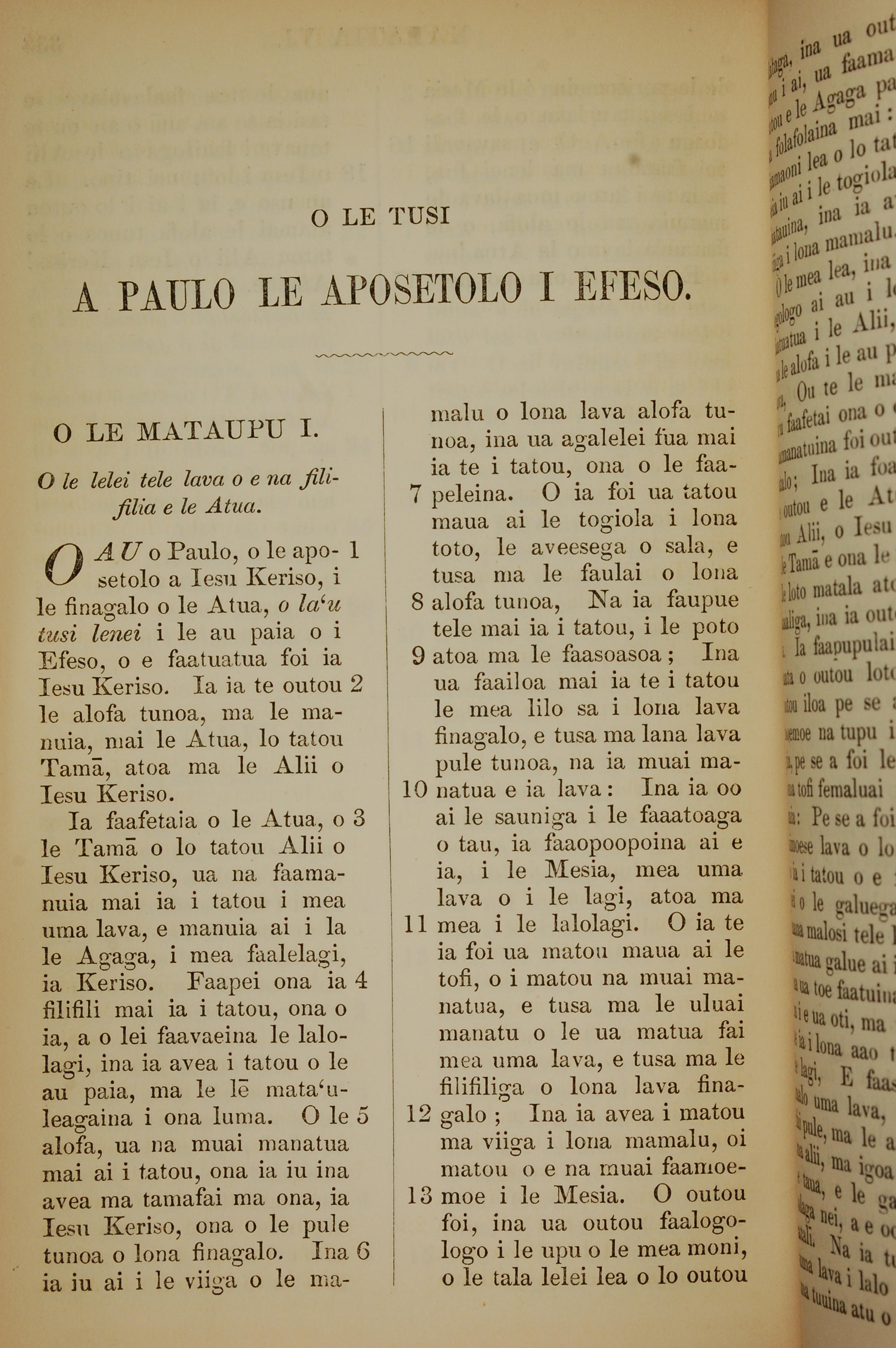 1849年薩摩亞語新約全書 以弗所書 1 章 1 節到 1 章 13 節