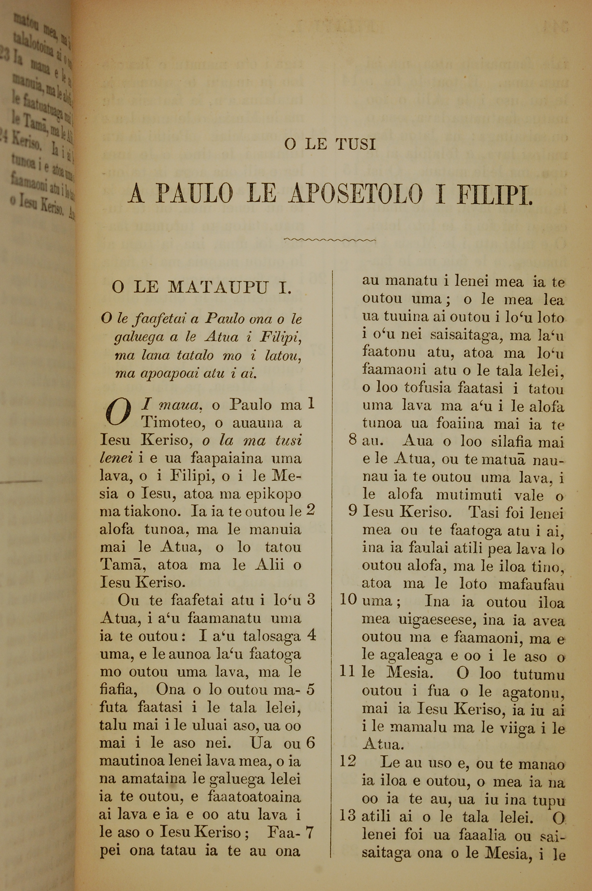 1849年薩摩亞語新約全書 腓立比書 1 章 1 節到 1 章 13 節