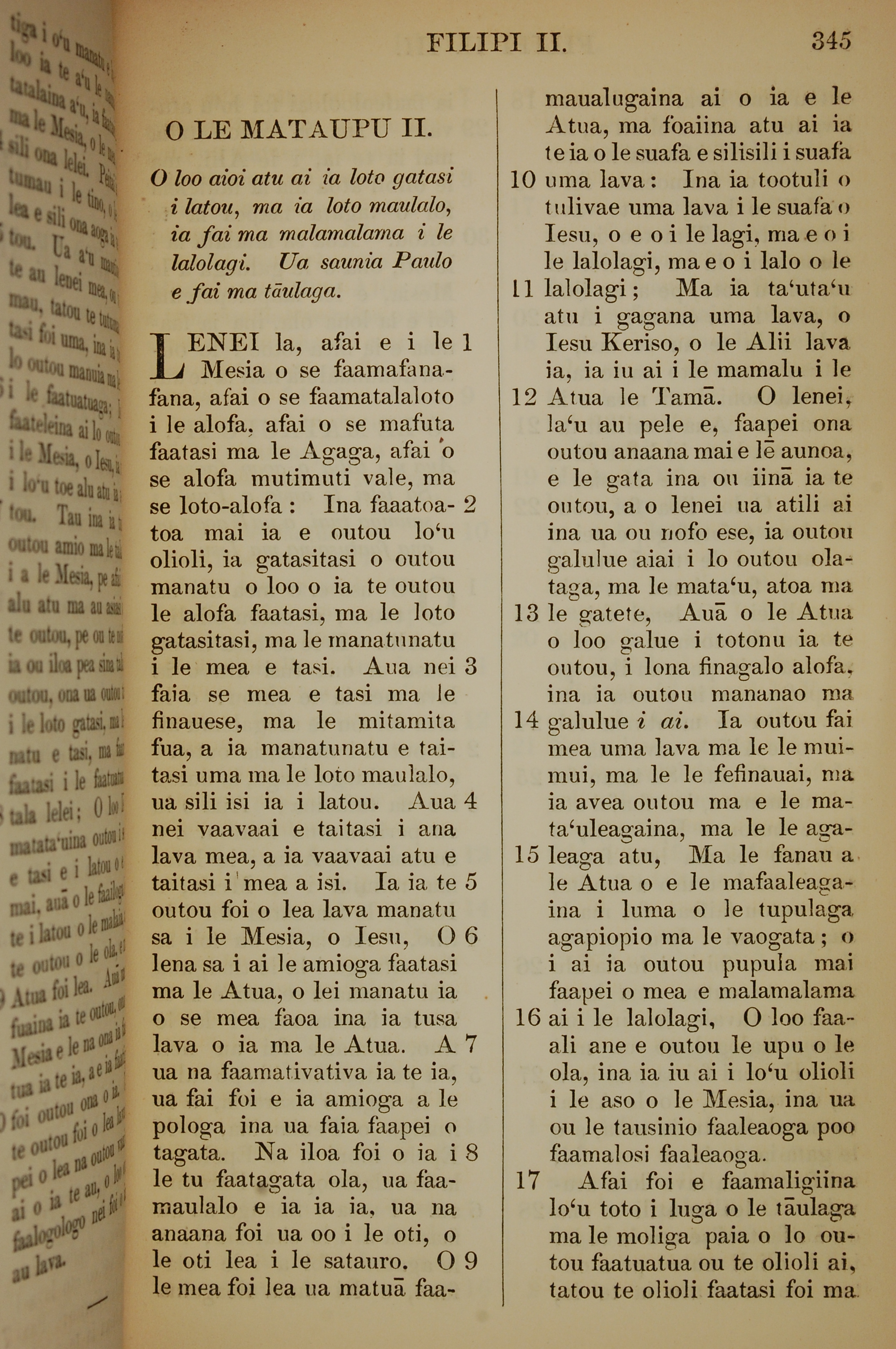 1849年薩摩亞語新約全書 腓立比書 2 章 1 節到 2 章 17 節