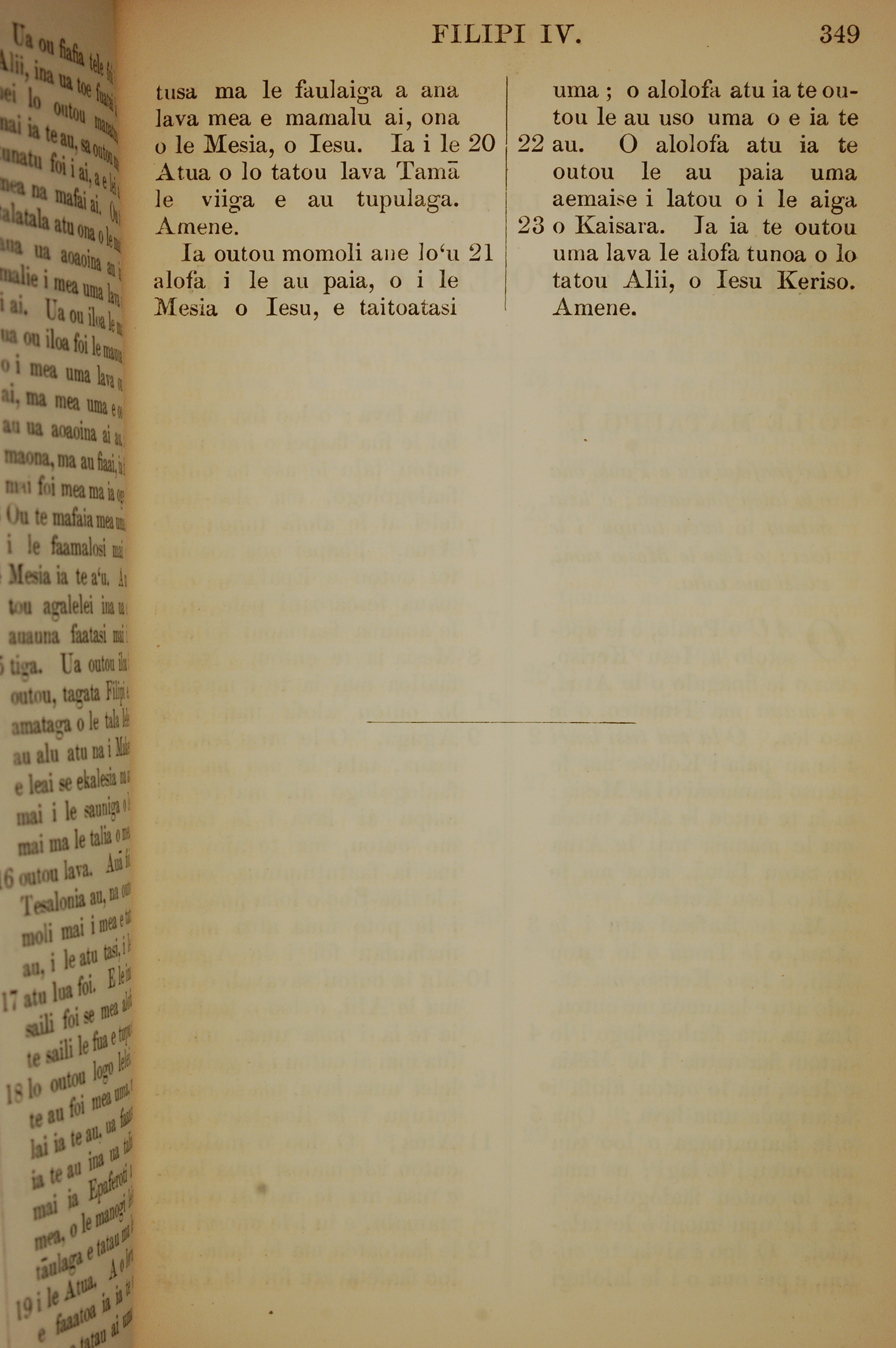 1849年薩摩亞語新約全書 腓立比書 4 章 20 節到 4 章 23 節