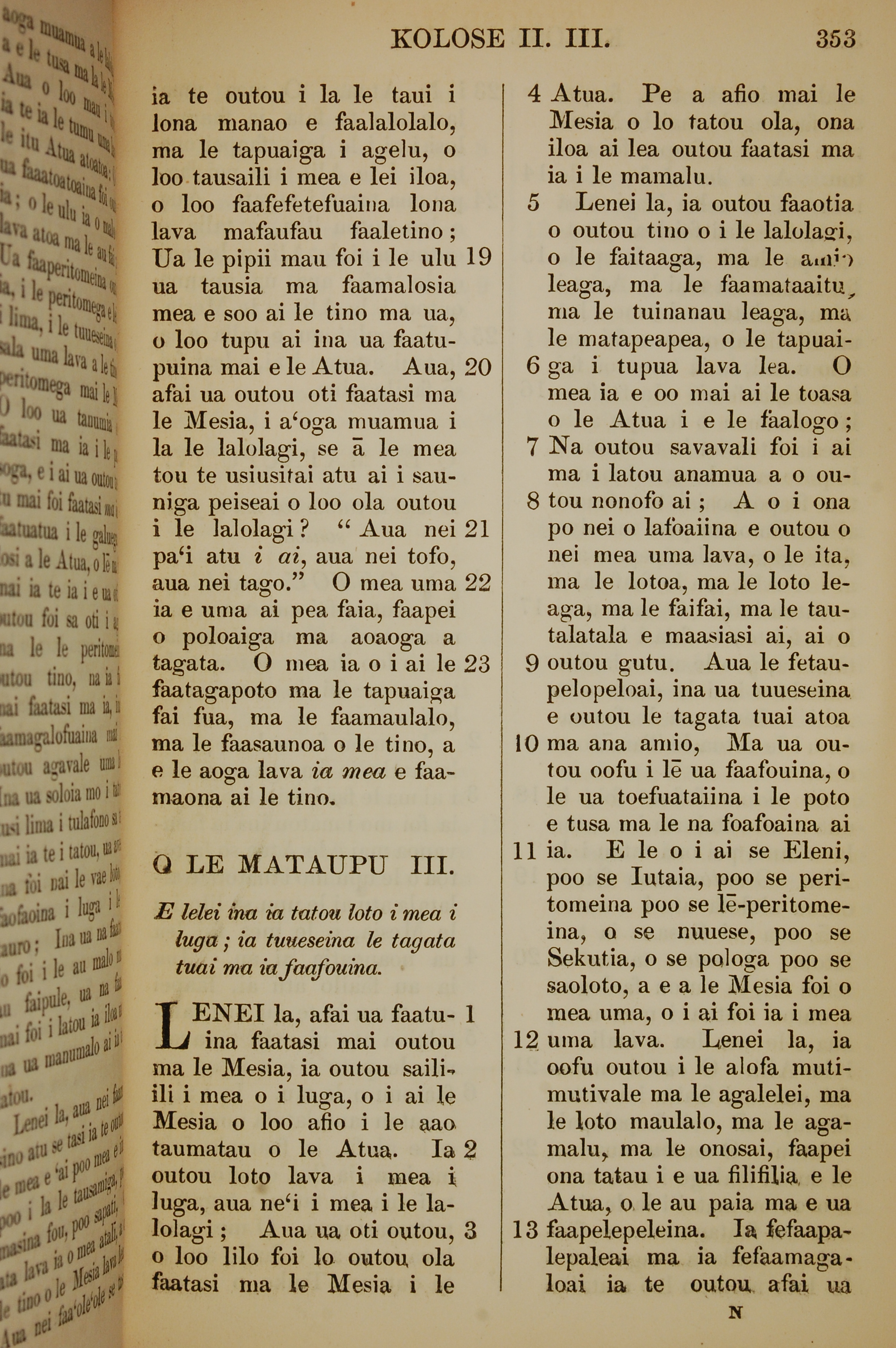 1849年薩摩亞語新約全書 歌羅西書 2 章 19 節到 3 章 13 節