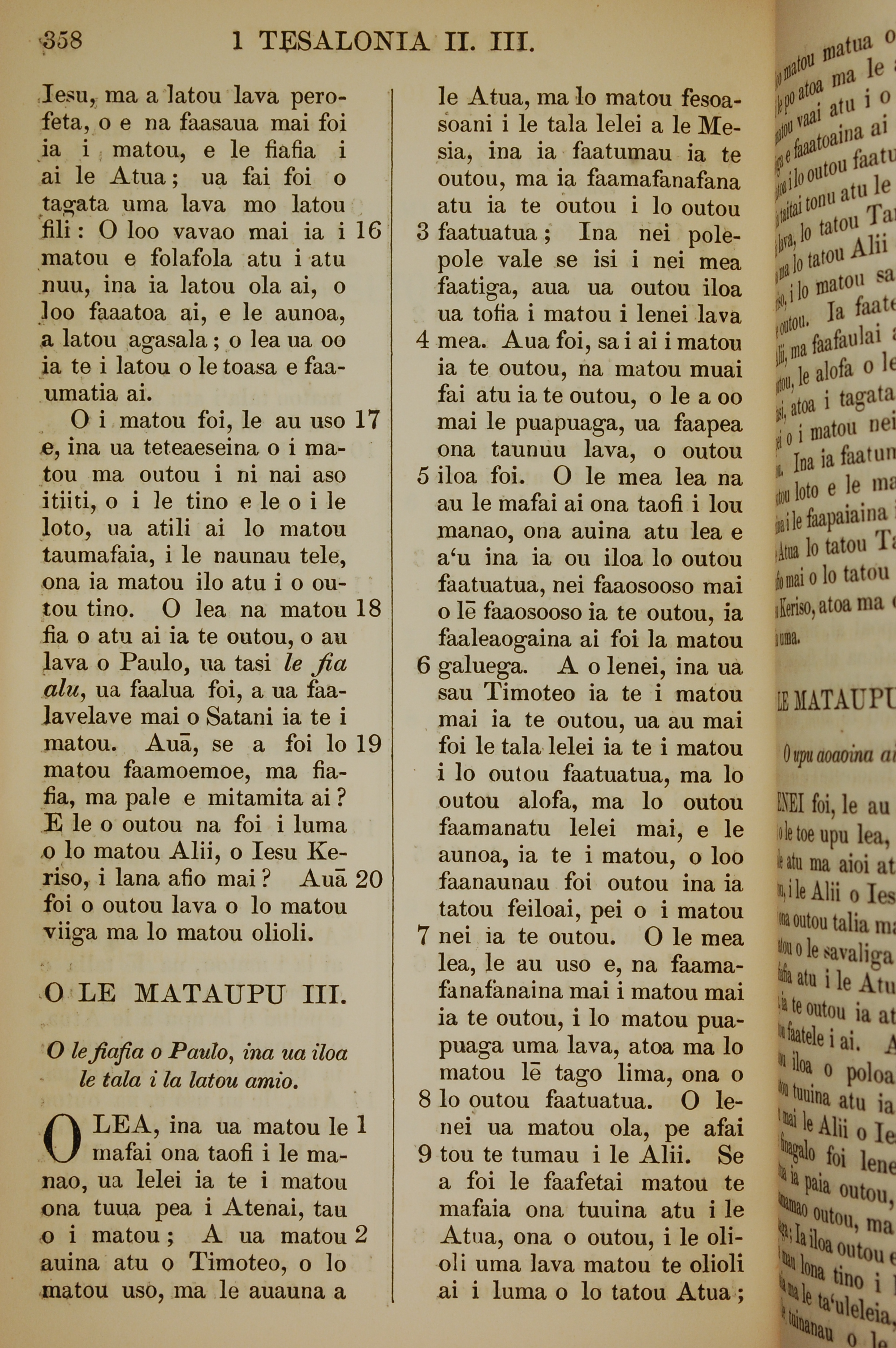 1849年薩摩亞語新約全書 帖撒羅尼迦前書 2 章 16 節到 3 章 9 節