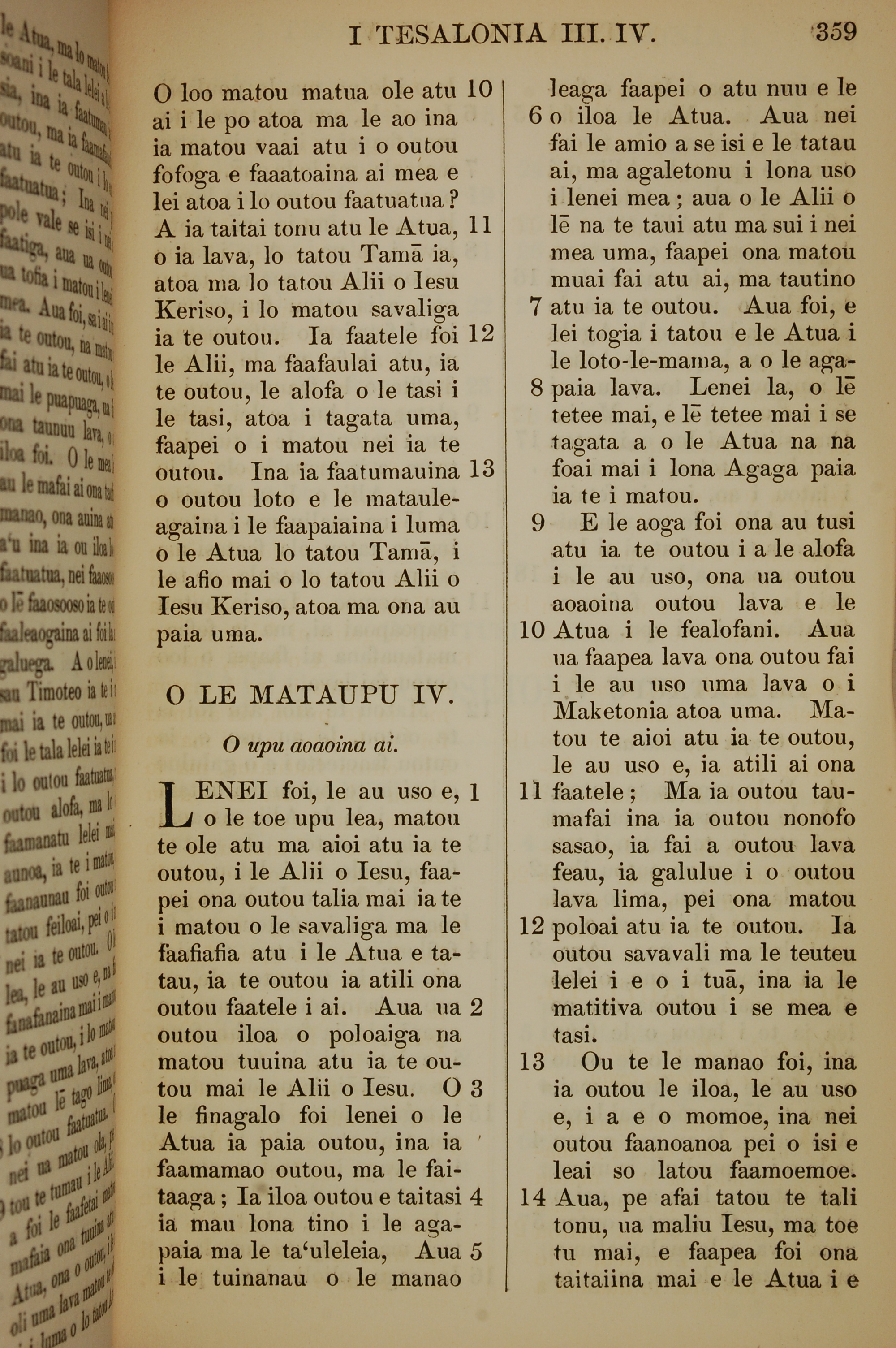 1849年薩摩亞語新約全書 帖撒羅尼迦前書 3 章 10 節到 4 章 14 節