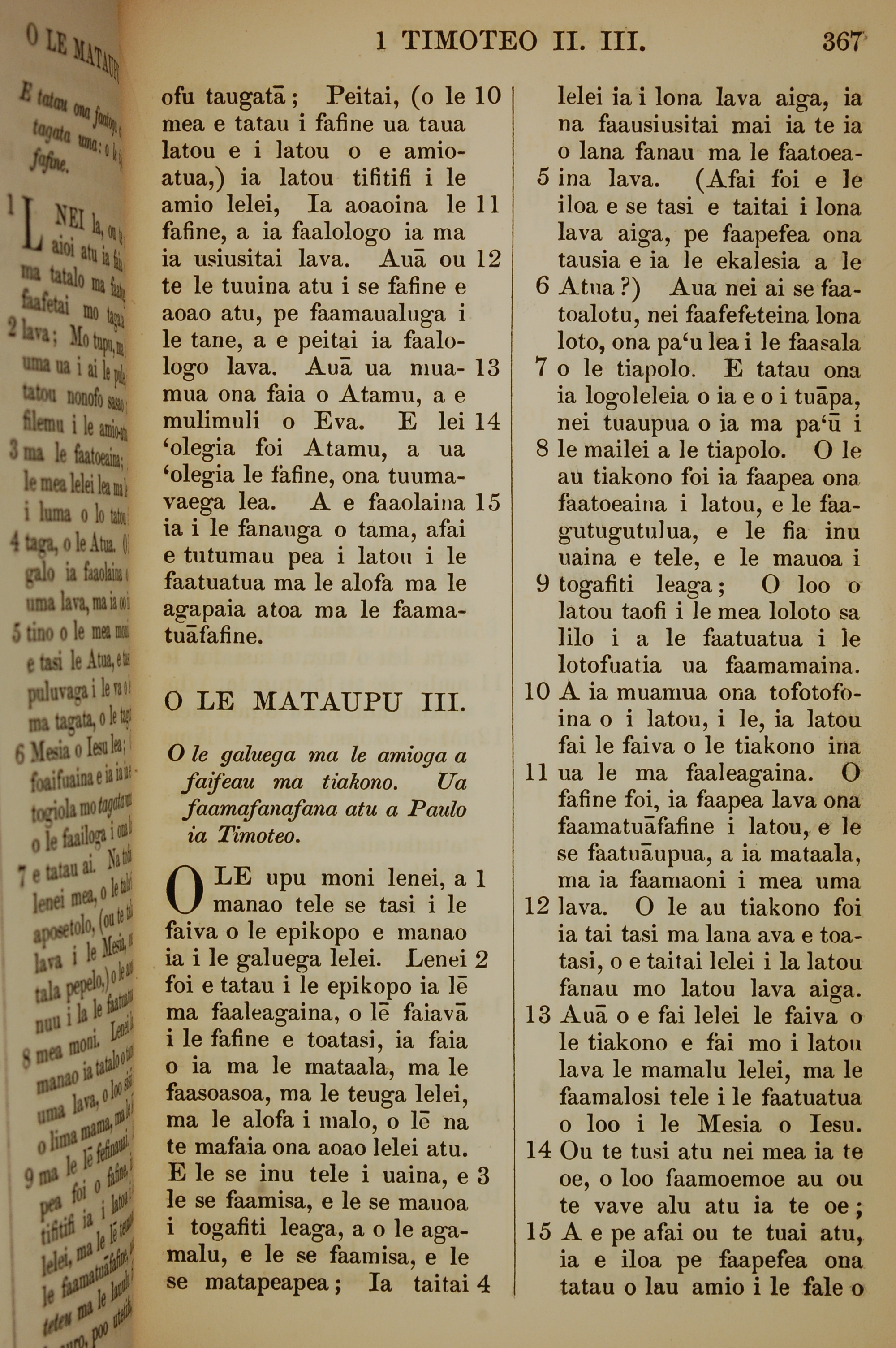 1849年薩摩亞語新約全書 提摩太前書 2 章 10 節到 3 章 15 節