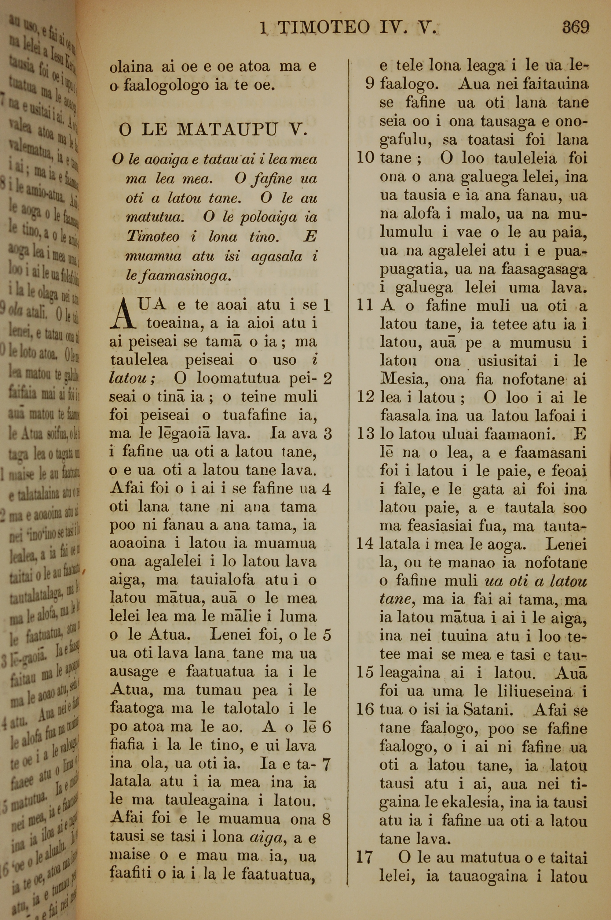 1849年薩摩亞語新約全書 提摩太前書 5 章 1 節到 5 章 17 節