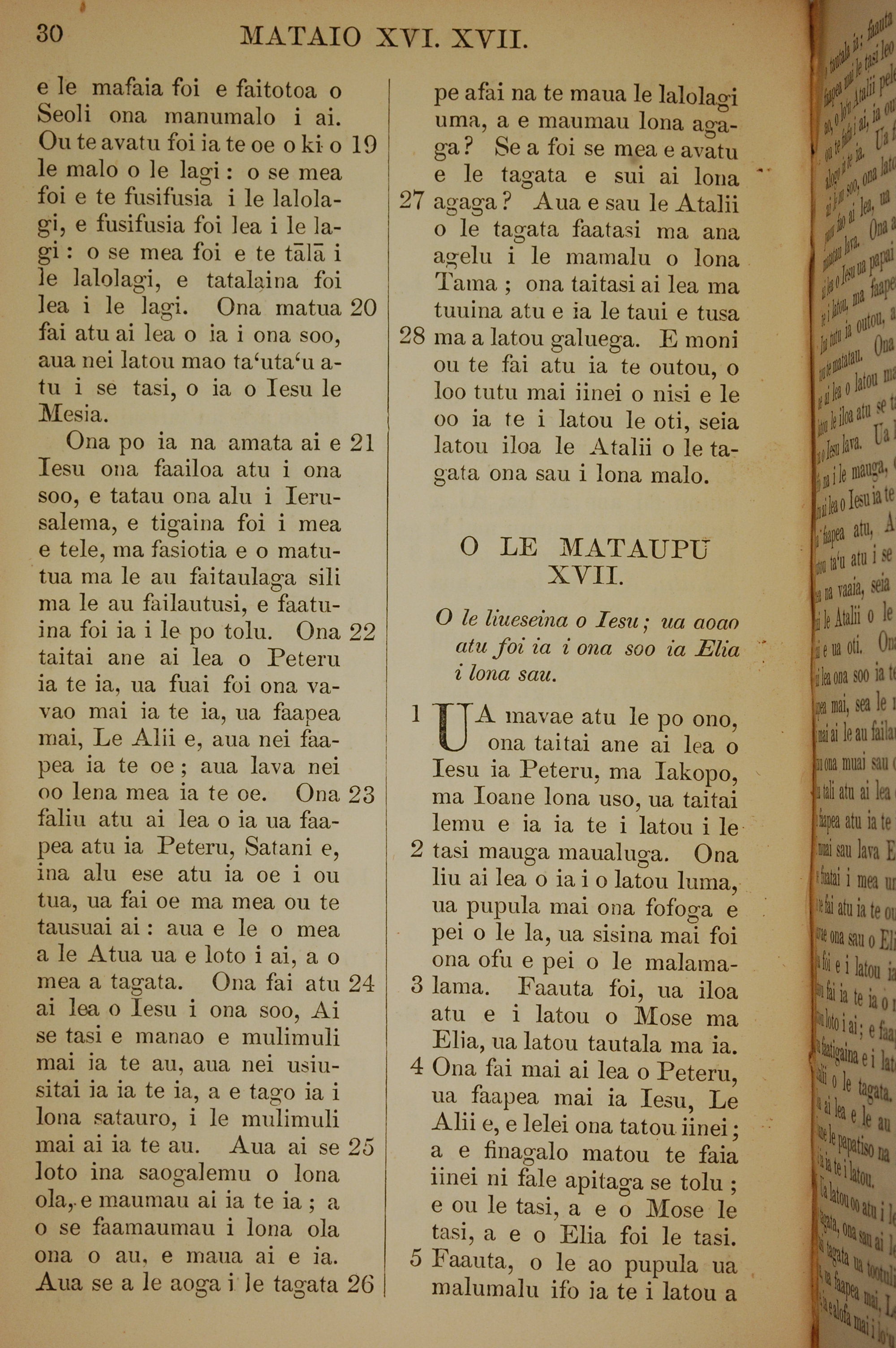 1849年薩摩亞語新約全書 馬太福音 16 章 19 節到 17 章 5 節