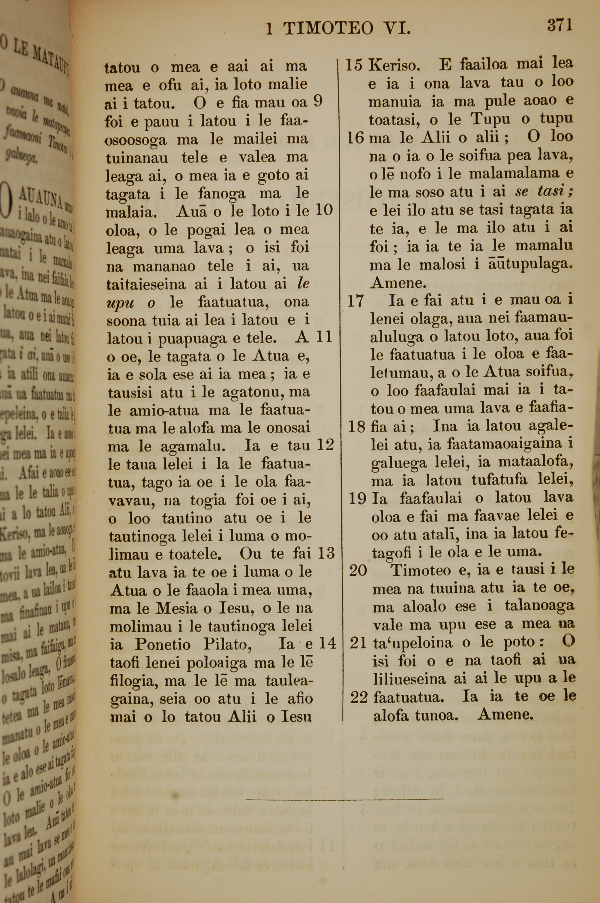 1849年薩摩亞語新約全書 提摩太前書 6 章 9 節到 6 章 22 節