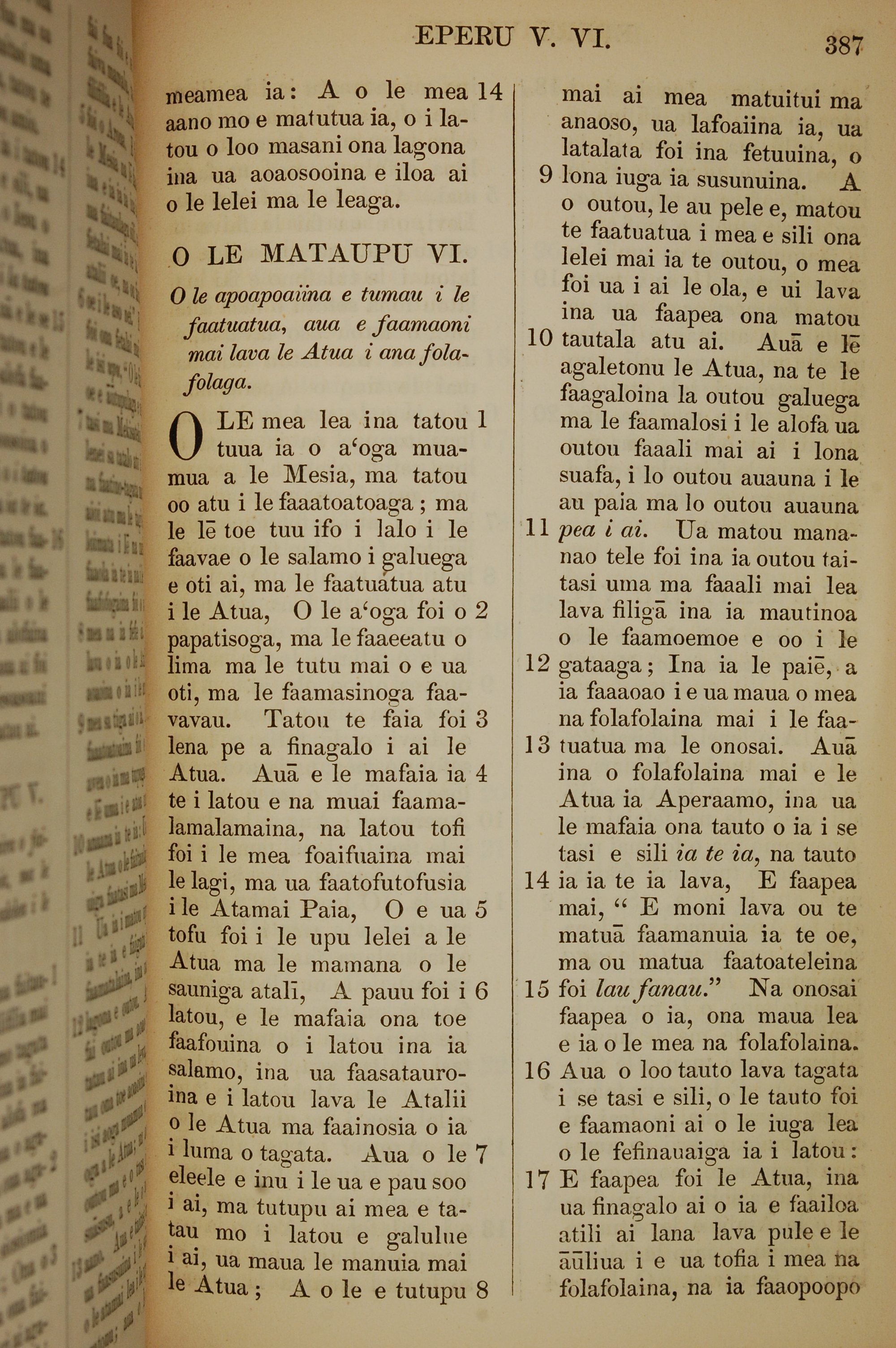 1849年薩摩亞語新約全書 希伯來書 5 章 14 節到 6 章 17 節