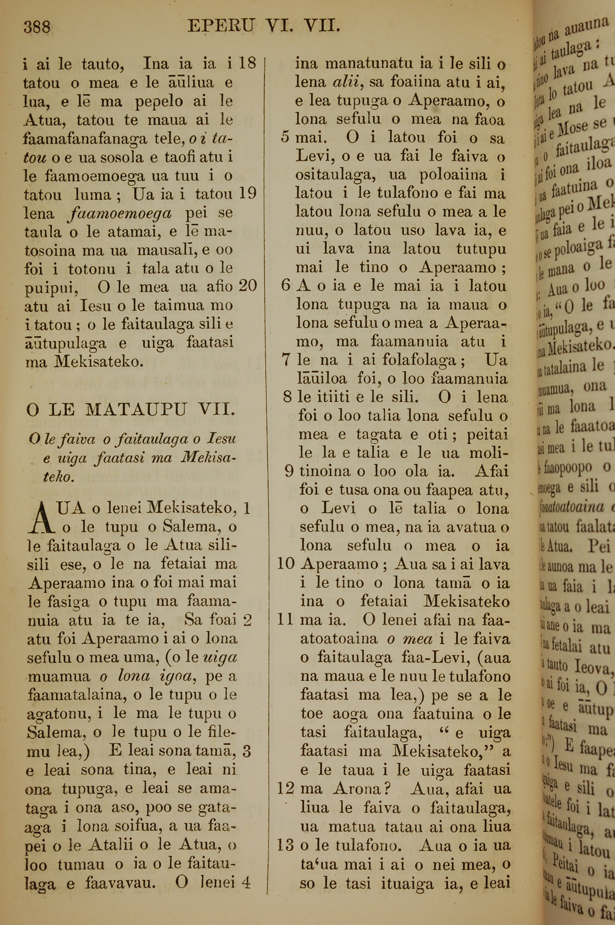 1849年薩摩亞語新約全書 希伯來書 6 章 18 節到 7 章 13 節