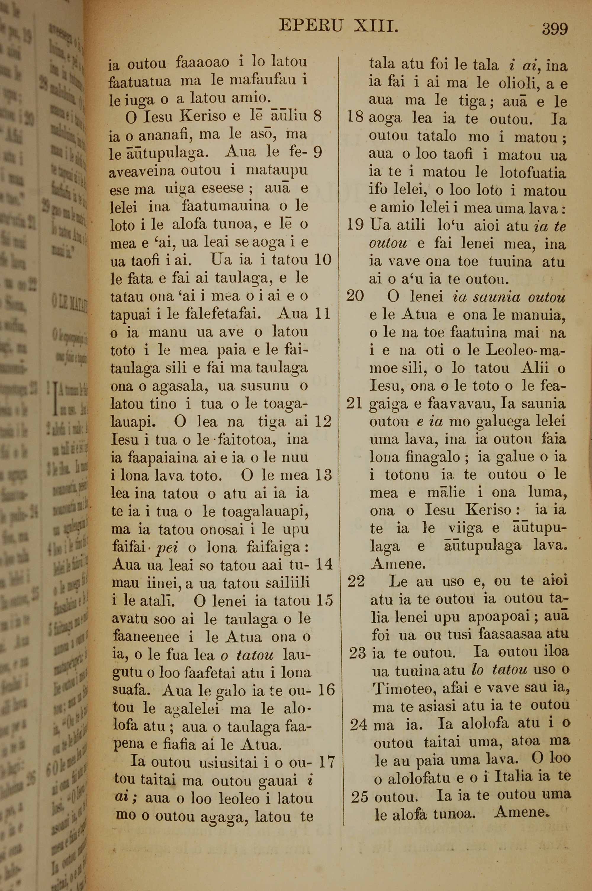 1849年薩摩亞語新約全書 希伯來書 13 章 8 節到 13 章 25 節