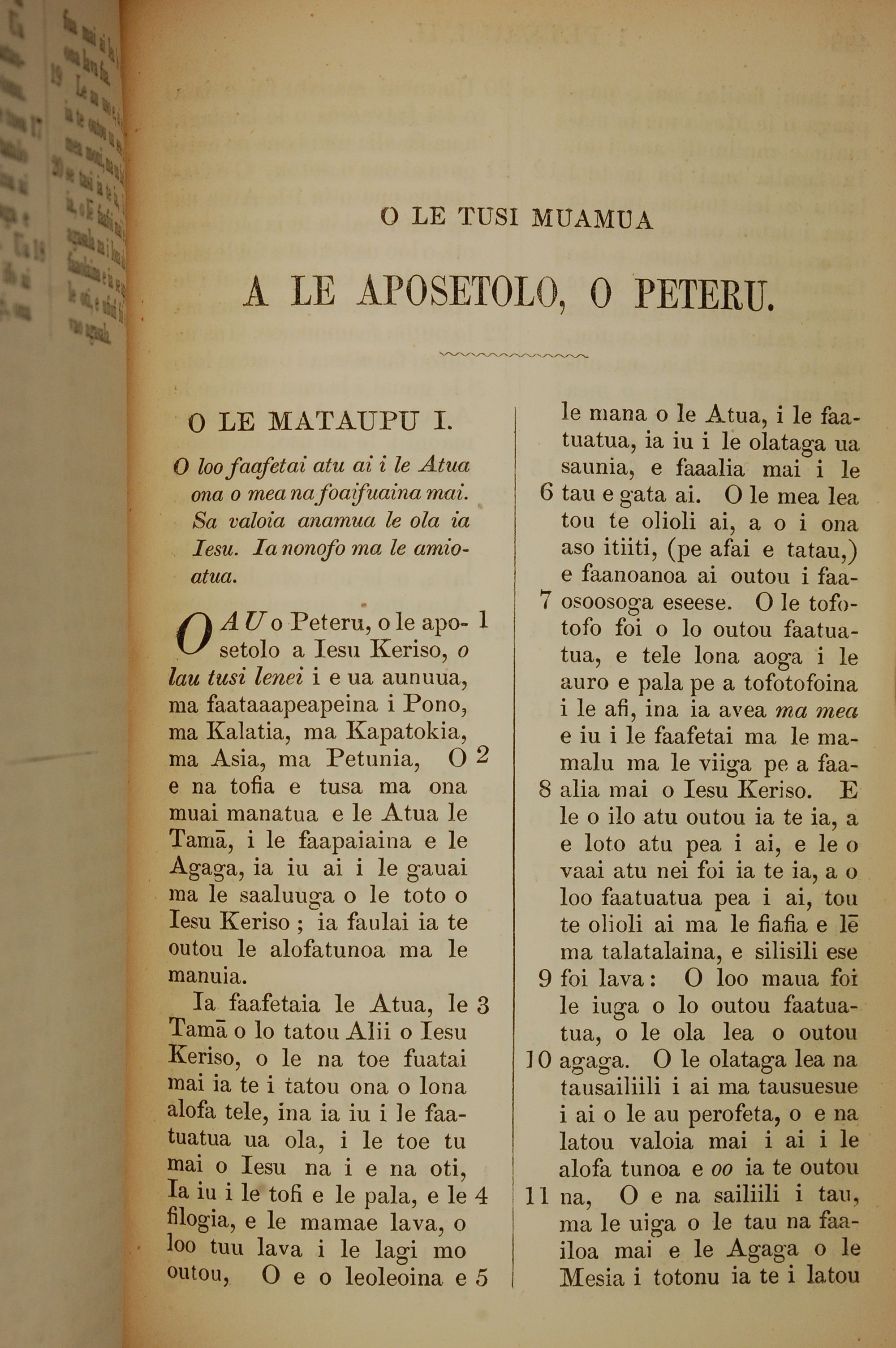 1849年薩摩亞語新約全書 彼得前書 1 章 1 節到 1 章 11 節