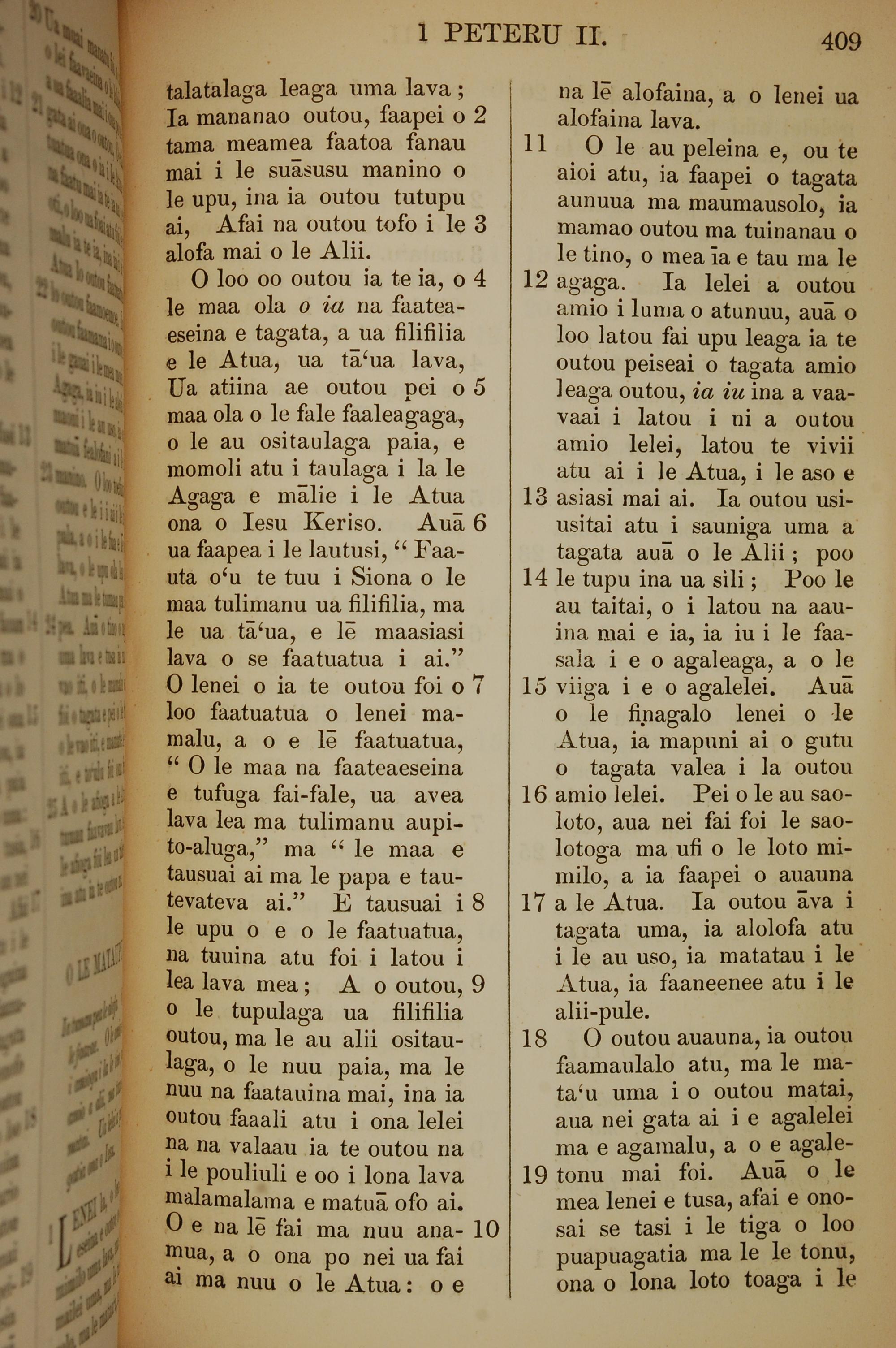 1849年薩摩亞語新約全書 彼得前書 2 章 2 節到 2 章 19 節