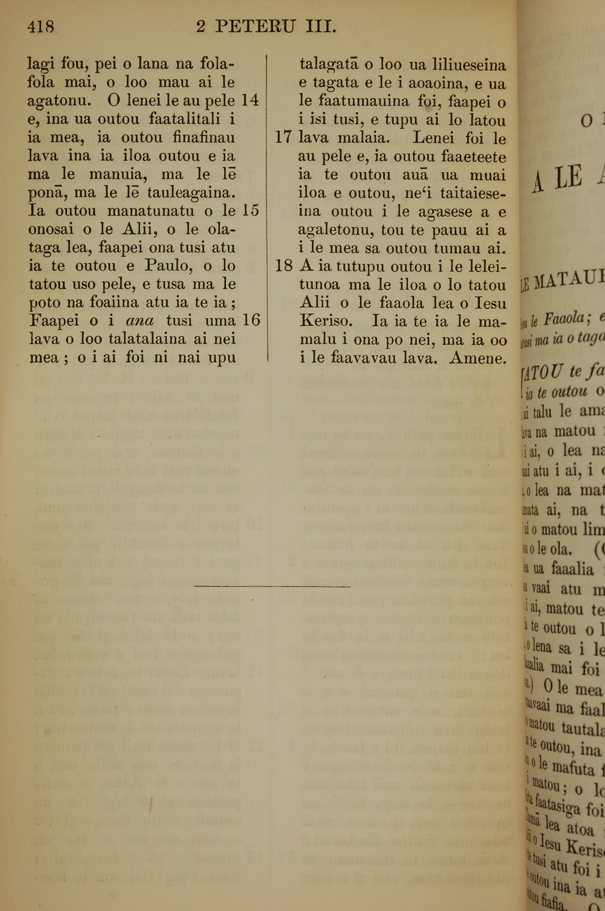 1849年薩摩亞語新約全書 彼得後書 3 章 14 節到 3 章 18 節