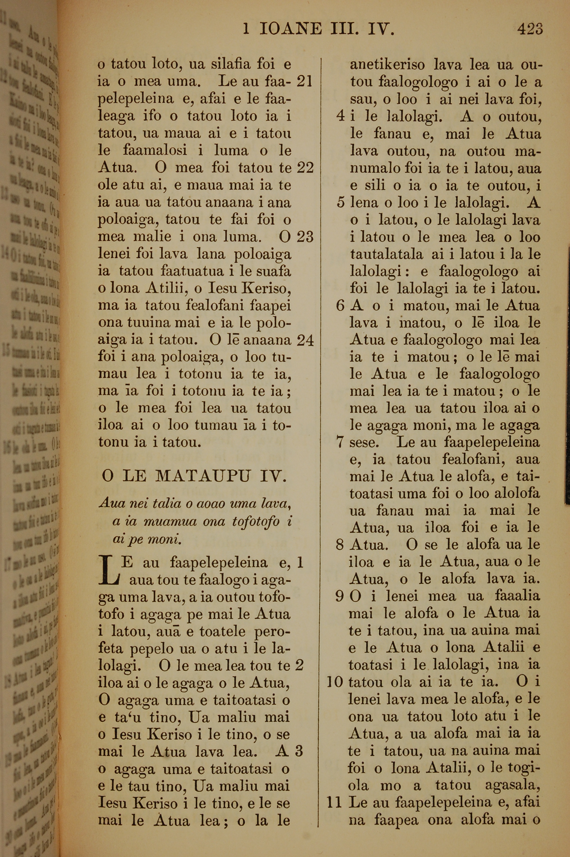 1849年薩摩亞語新約全書 約翰一書 3 章 21 節到 4 章 11 節