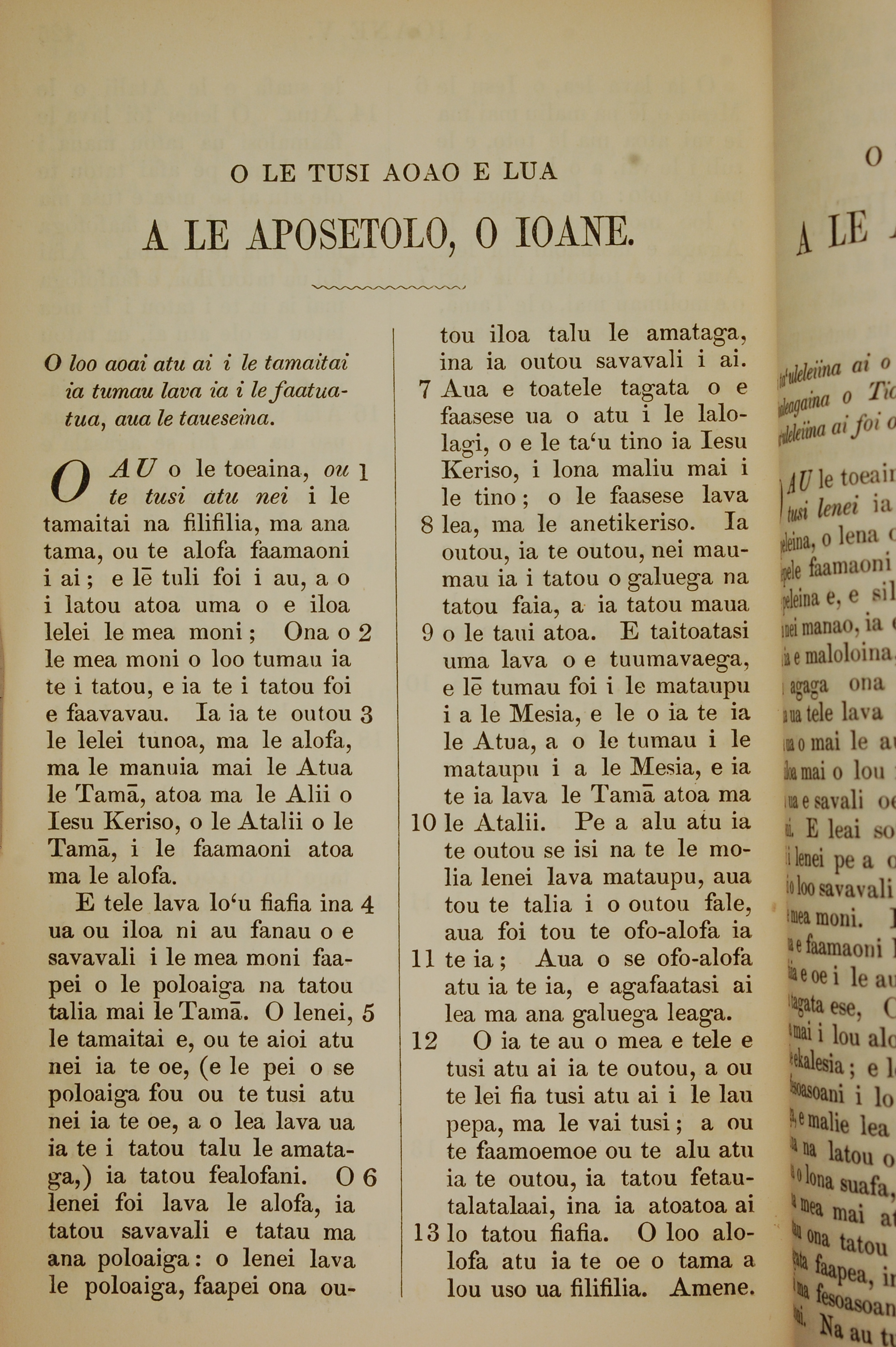 1849年薩摩亞語新約全書 約翰二書 1 章 1 節到 1 章 13 節