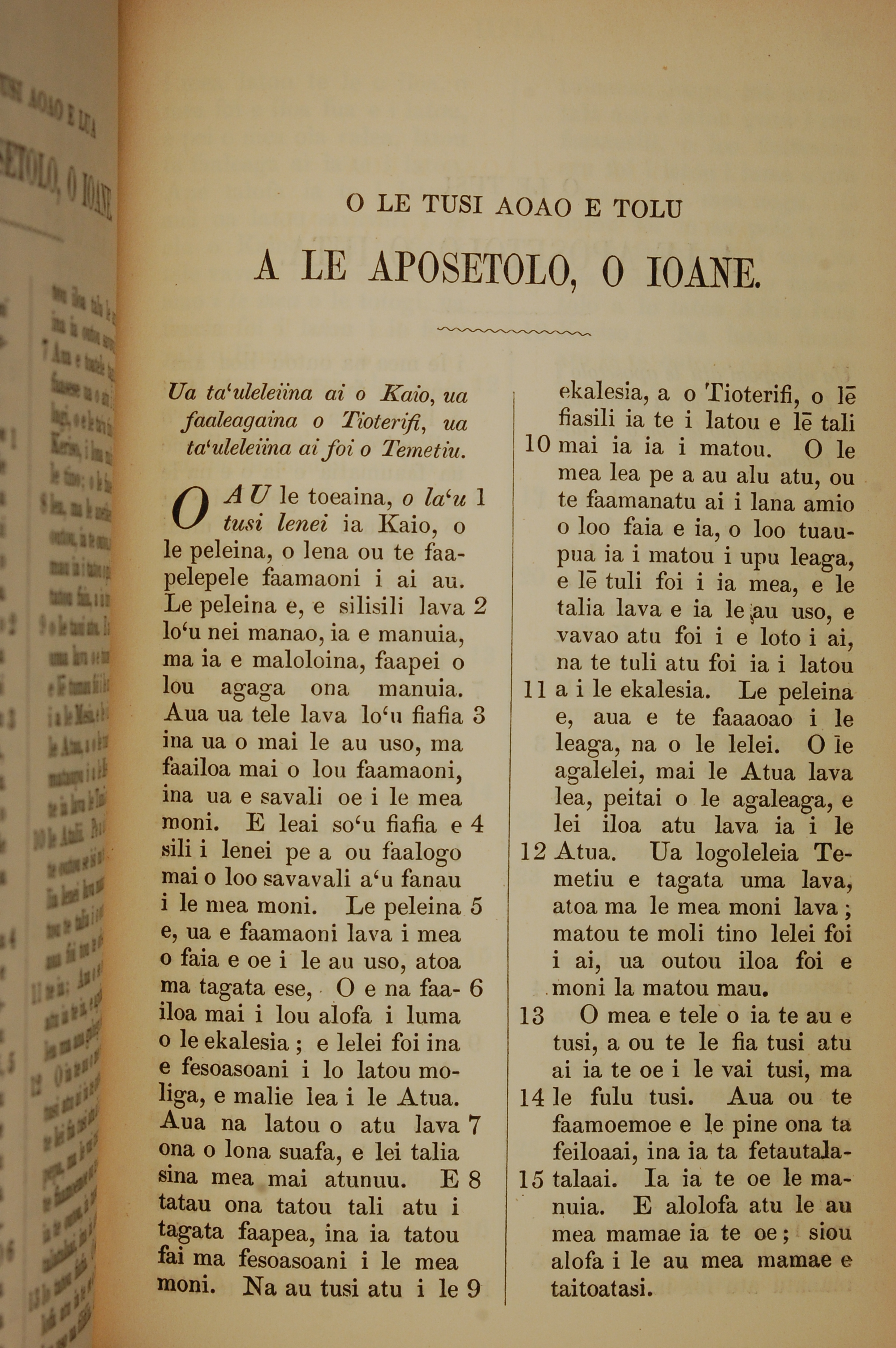 1849年薩摩亞語新約全書 約翰三書 1 章 1 節到 1 章 15 節