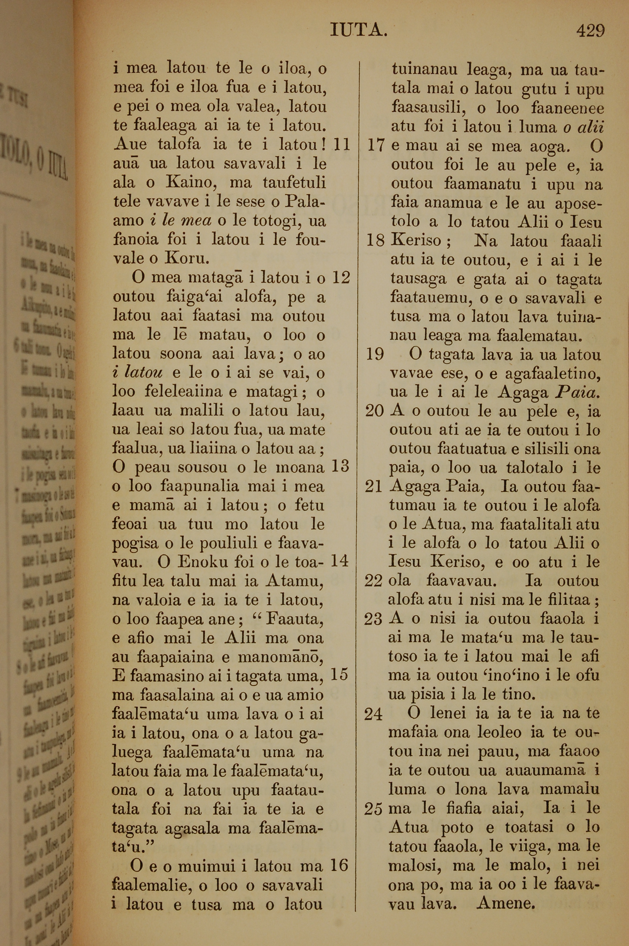 1849年薩摩亞語新約全書 猶大書 1 章 11 節到 1 章 25 節