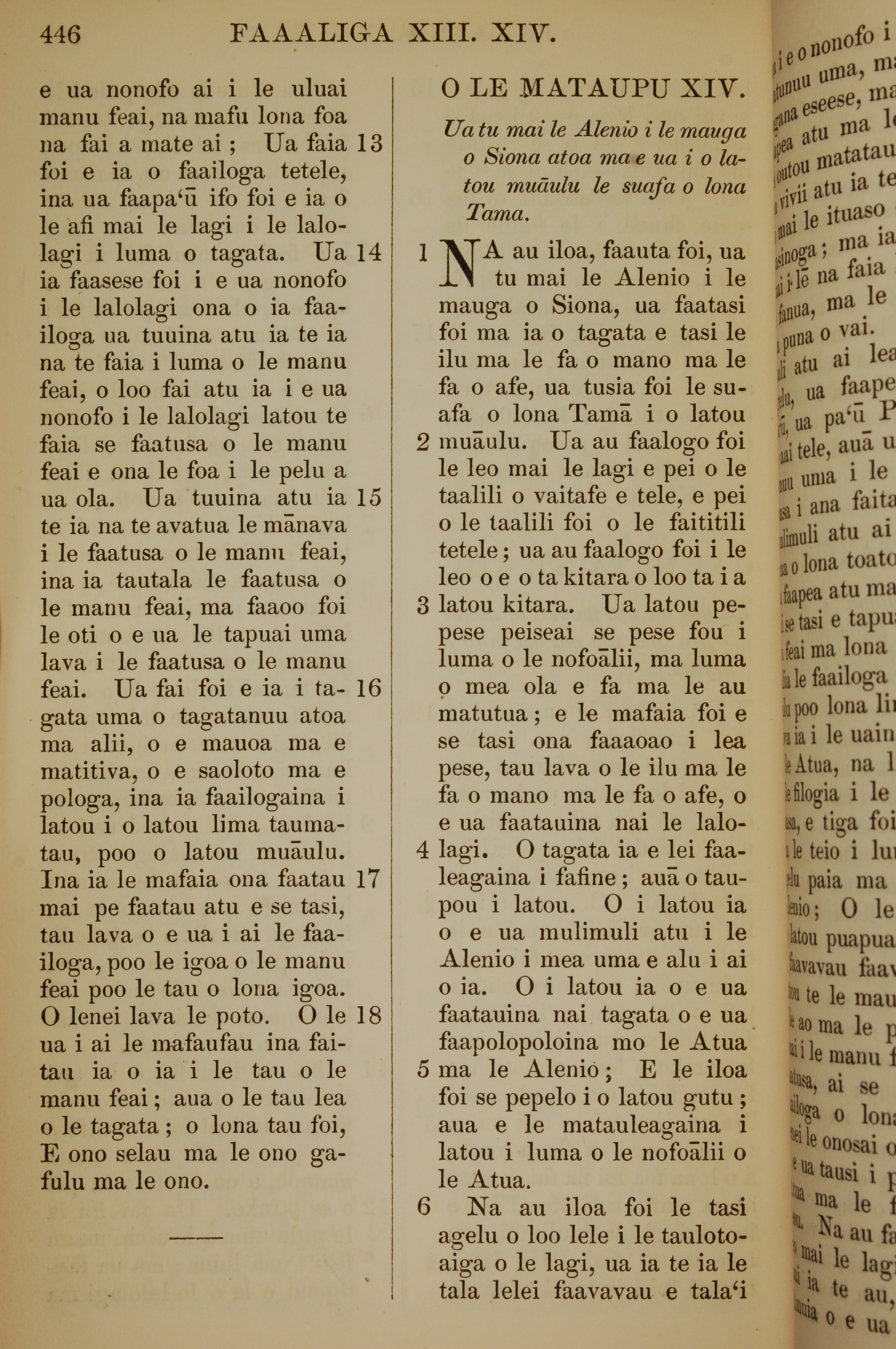 1849年薩摩亞語新約全書 啟示錄 13 章 13 節到 14 章 6 節