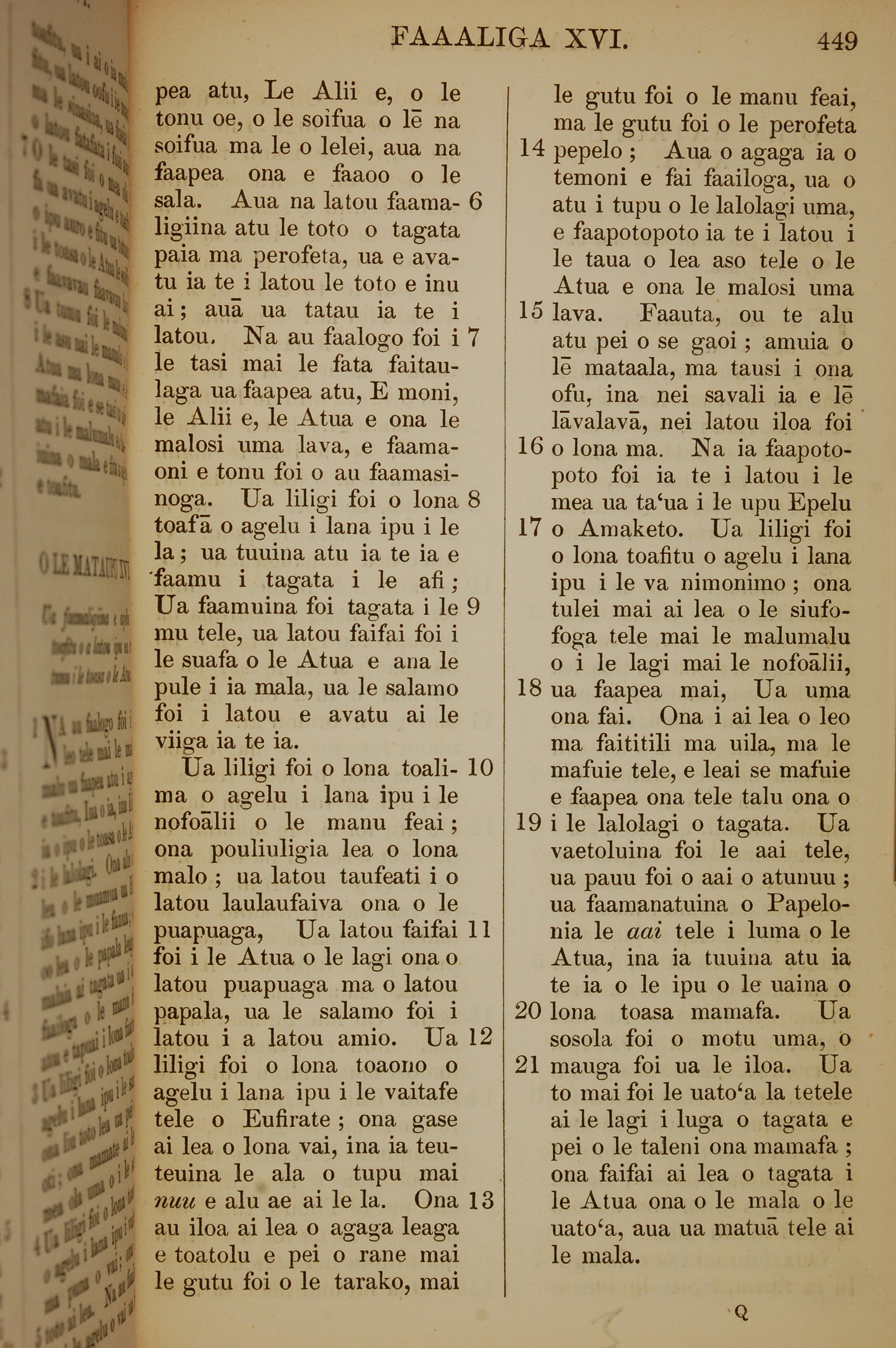 1849年薩摩亞語新約全書 啟示錄 16 章 6 節到 16 章 21 節